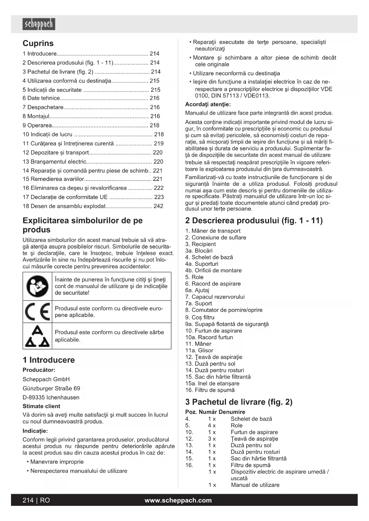 MANUAL DE UTILIZARE VC25 SCHEPPACH