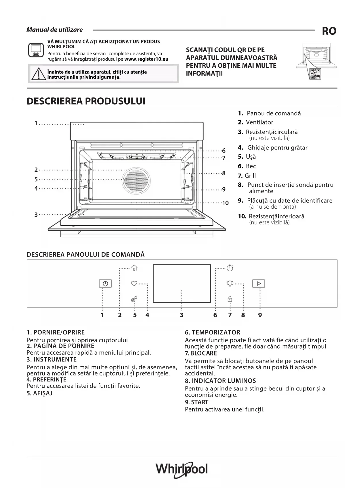 WCW9O7PHTSB - Cuptor WHIRLPOOL - Manual de utilizare gratuit