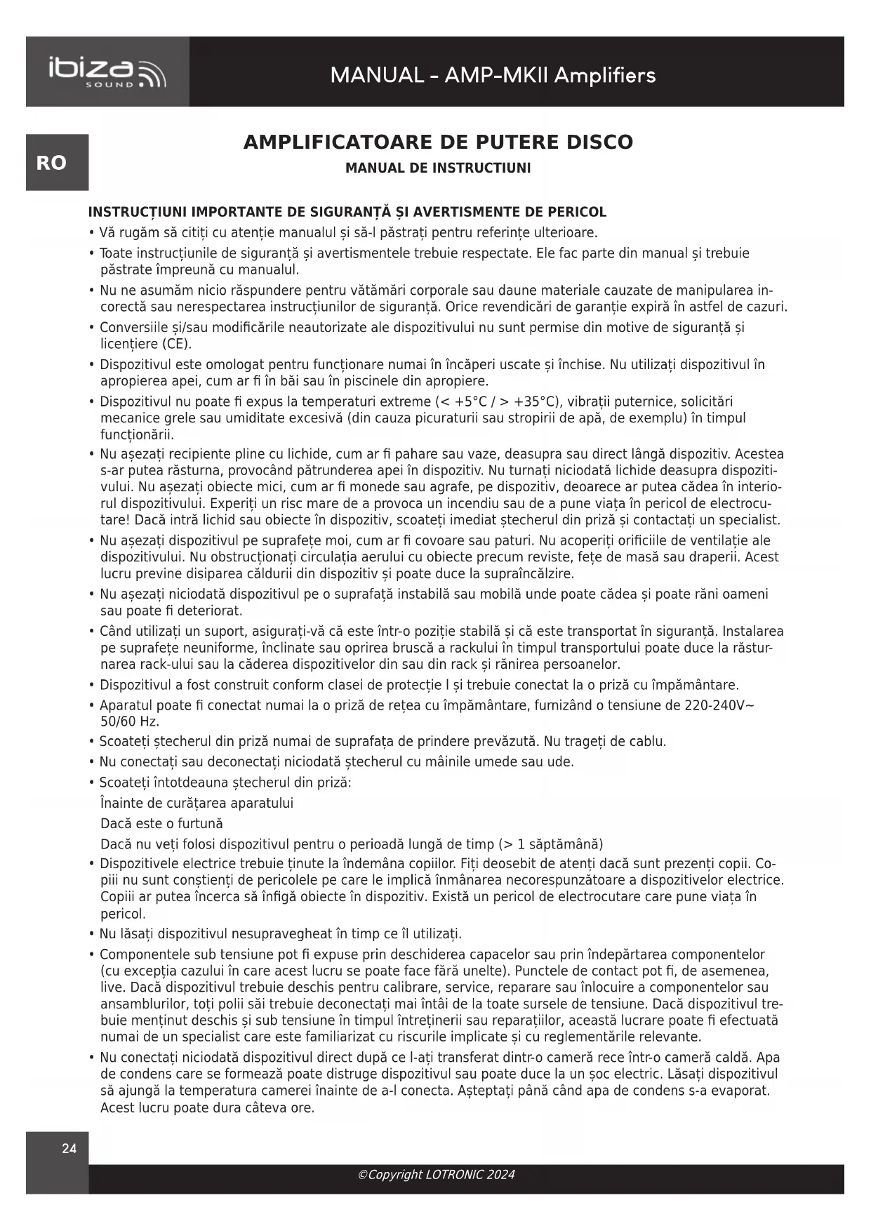 MANUAL DE UTILIZARE AMP600MKII IBIZA SOUND
