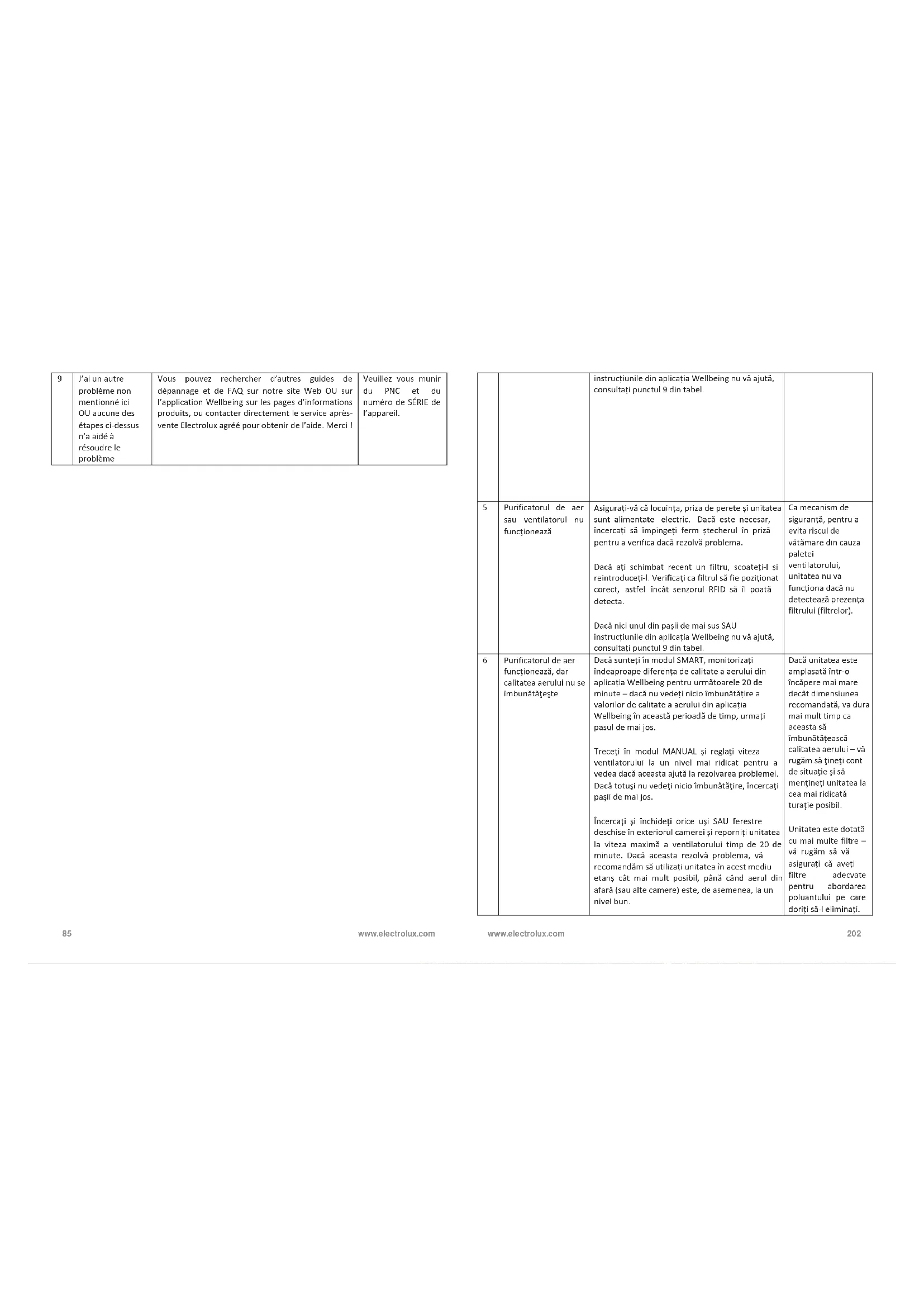 www.electrolux.com instrucțiunile din aplicația Wellbeing nu vă ajută, consultați punctul 9 din tabel.
