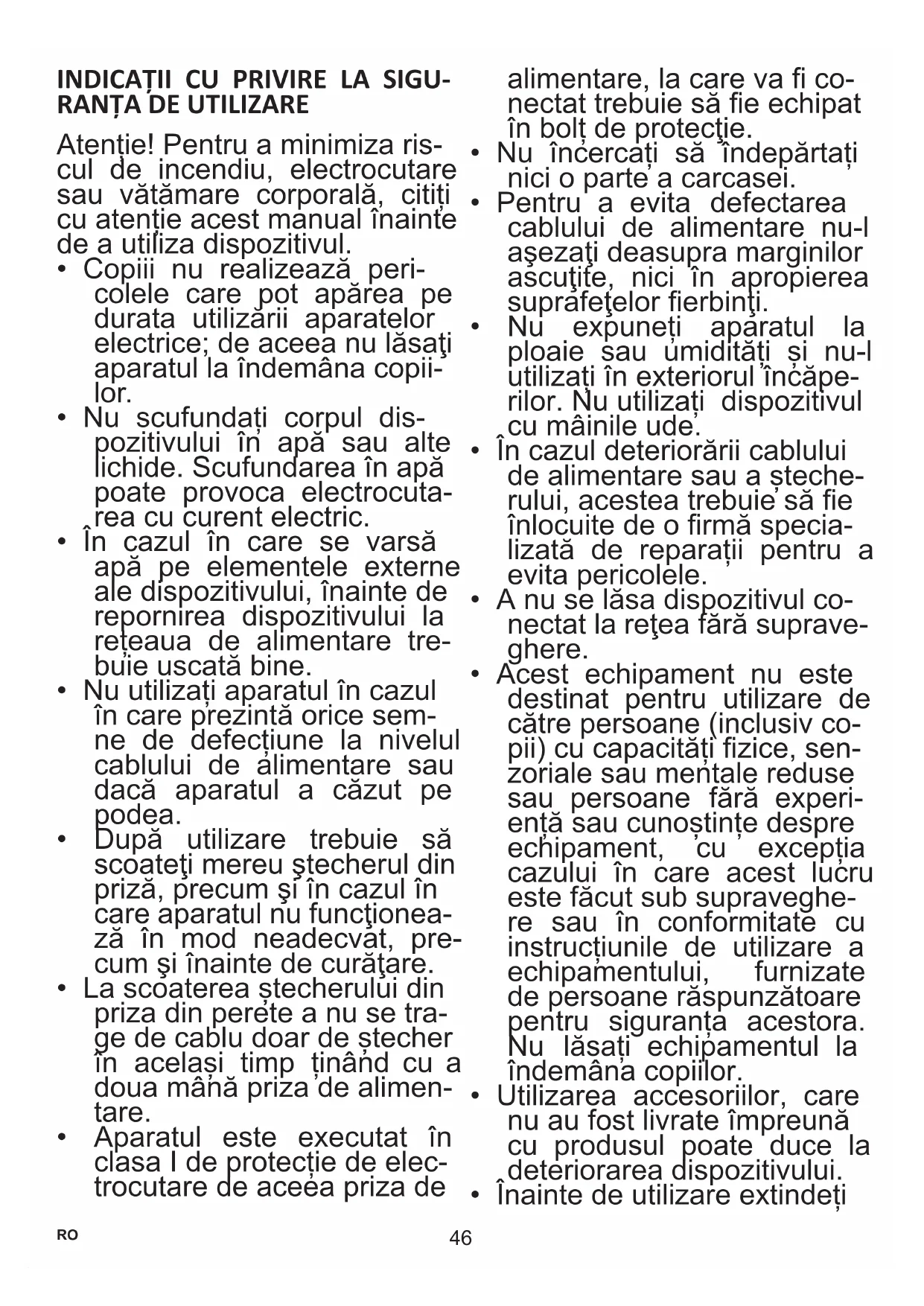 Atenție! Pentru a minimiza ris- cul de incendiu, electrocutare sau vătămare corporală, citiți cu atenție acest manual înainte de a utiliza dispozitivul.