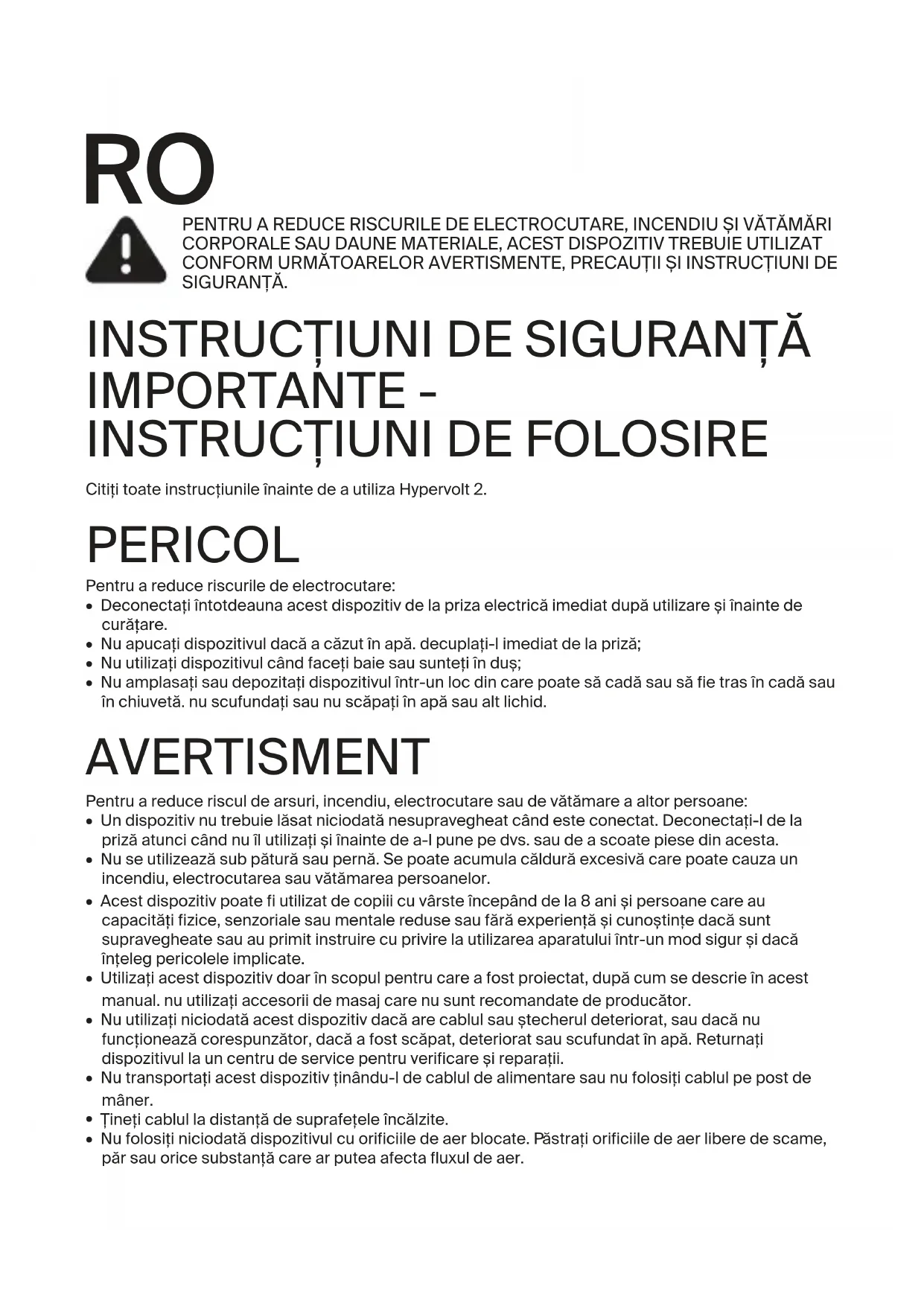 Citii toate instruciunile înainte de a utiliza Hypervolt 2. PERICOL Pentru a reduce riscurile de electrocutare: