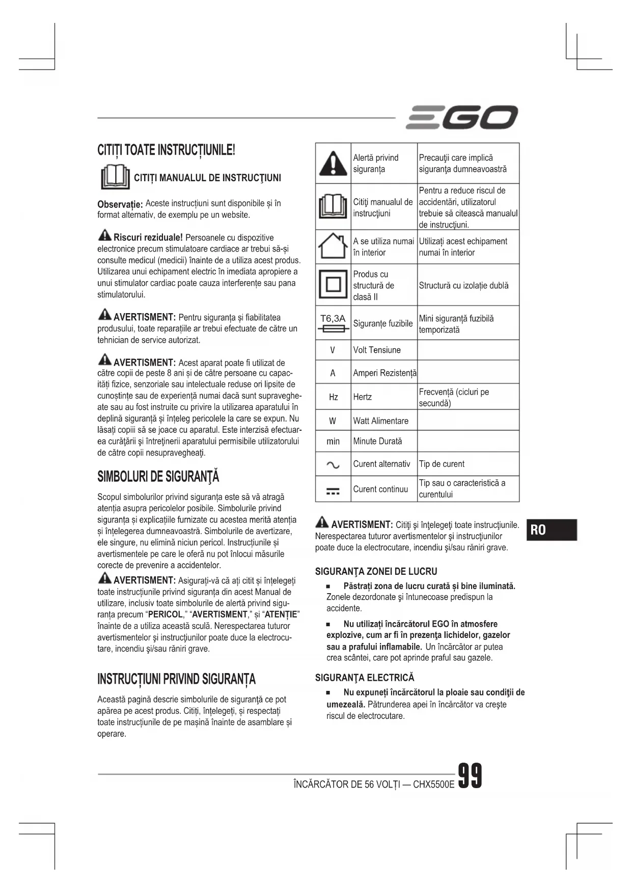 CHX5500 - Încărcător de baterii EGO - Manual de utilizare gratuit