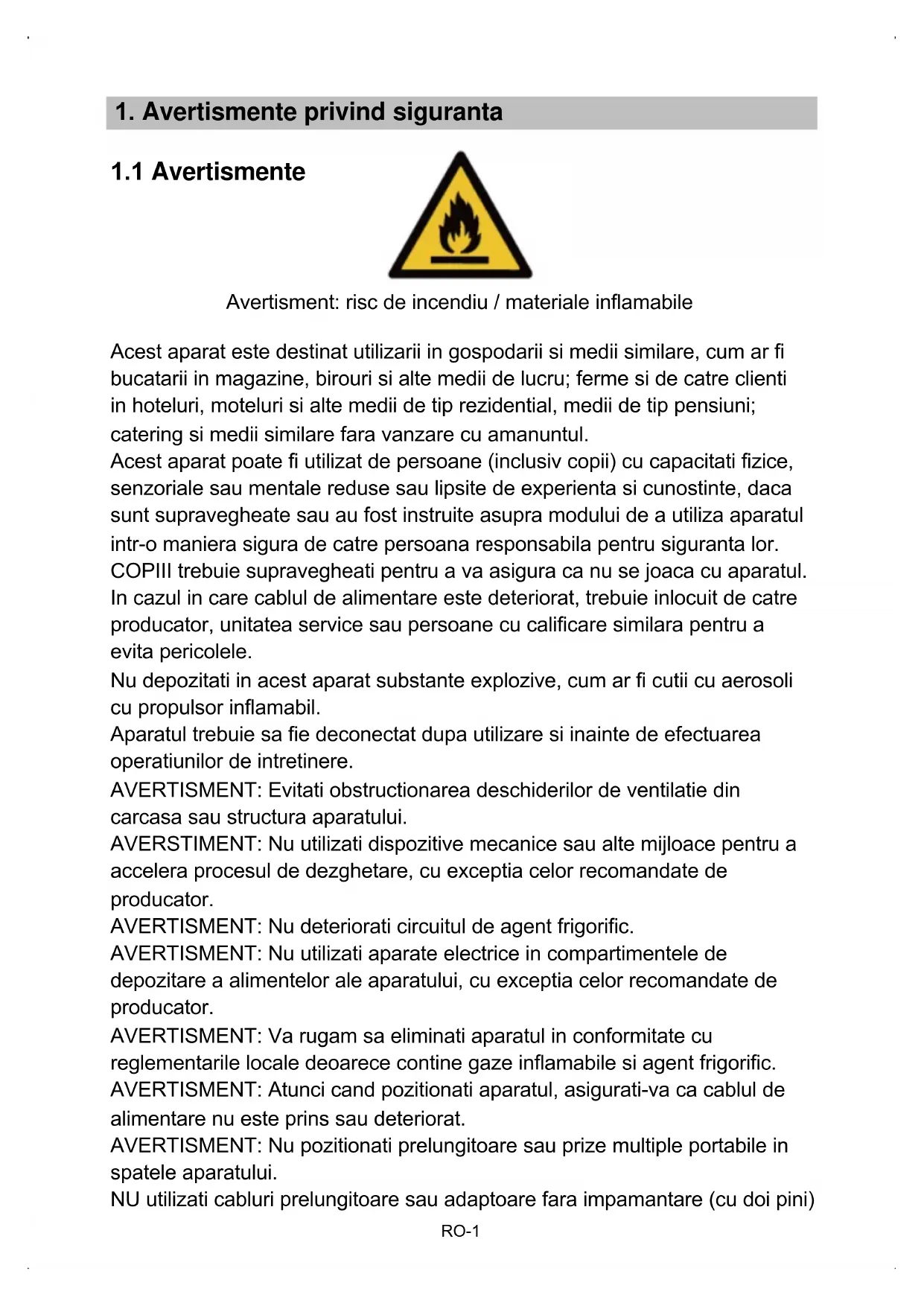 1. Avertissement privind siguranta