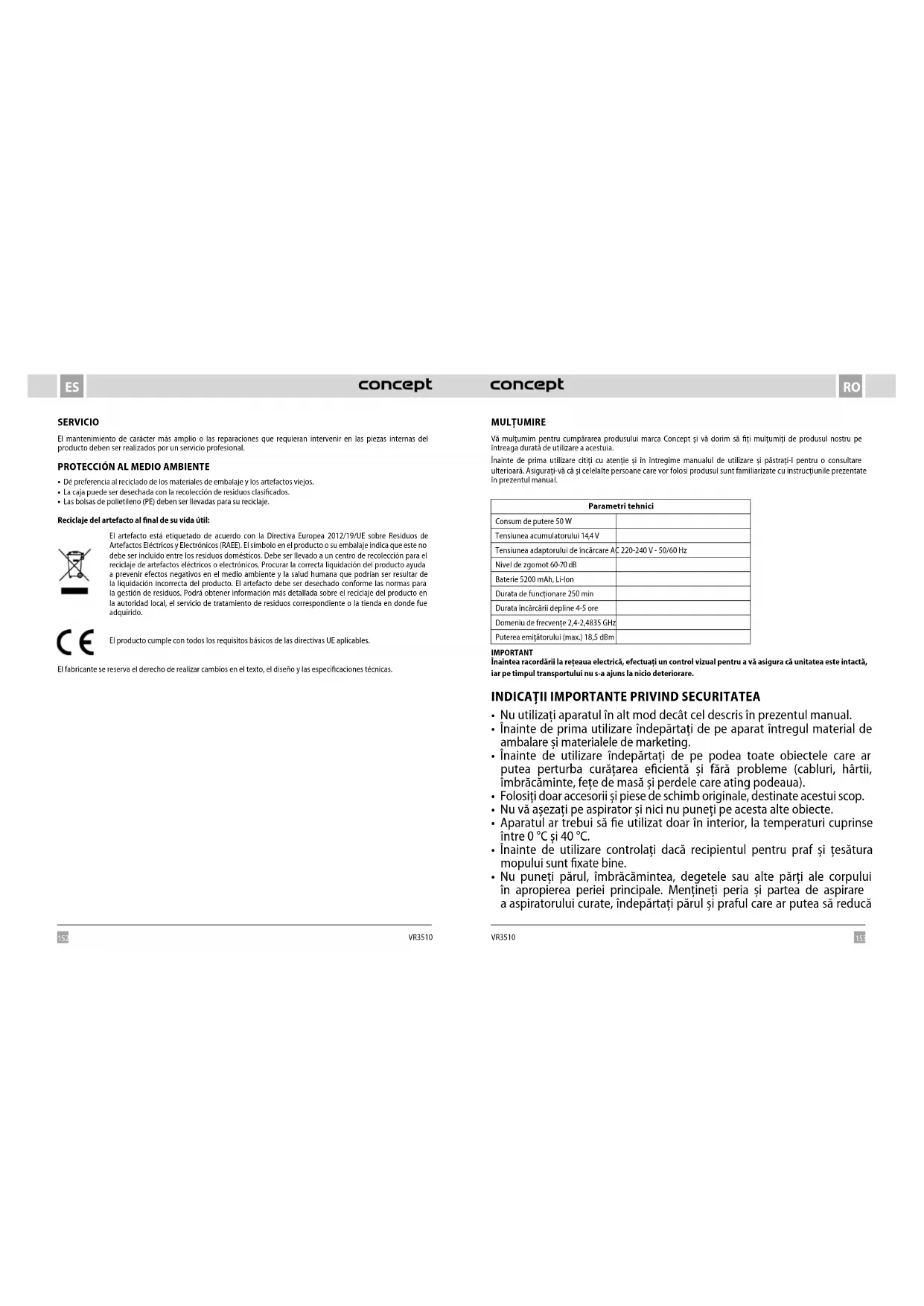 MANUAL DE UTILIZARE Perfect Clean VR3510 Concept