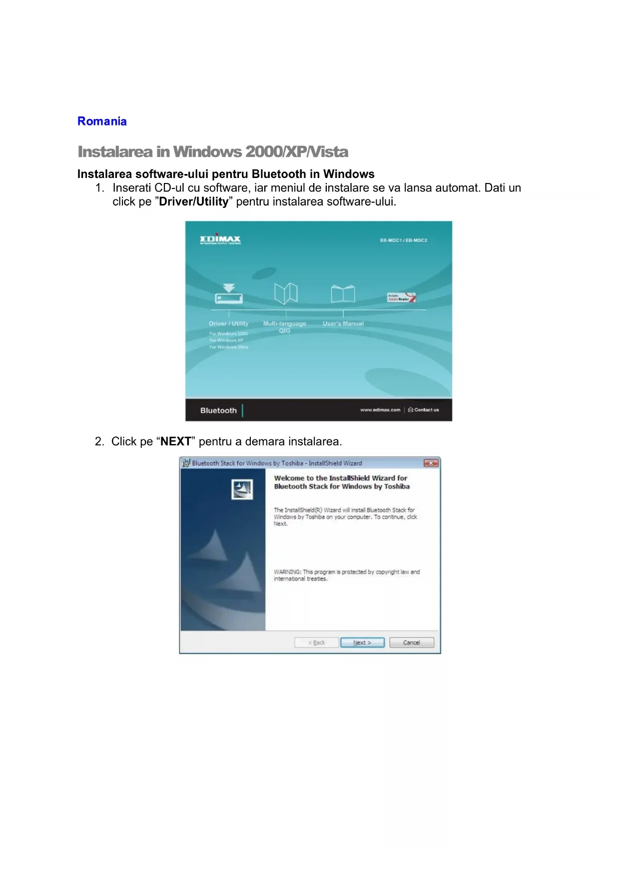 Instalarea software-ului pentru Bluetooth in Windows