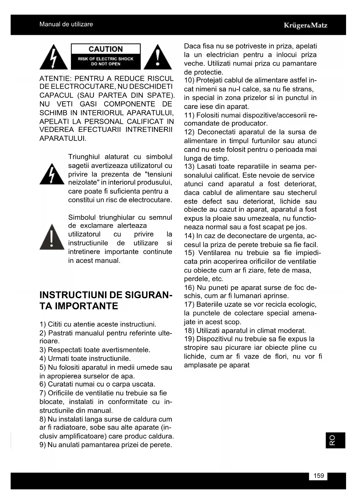 INSTRUCTIUNI DE SIGURAN-TA IMPORTANTE