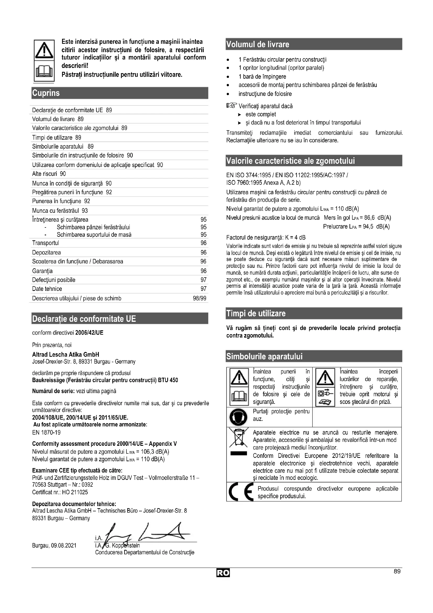 BTU 450 - Fierăstrău ATIKA - Manual de utilizare gratuit