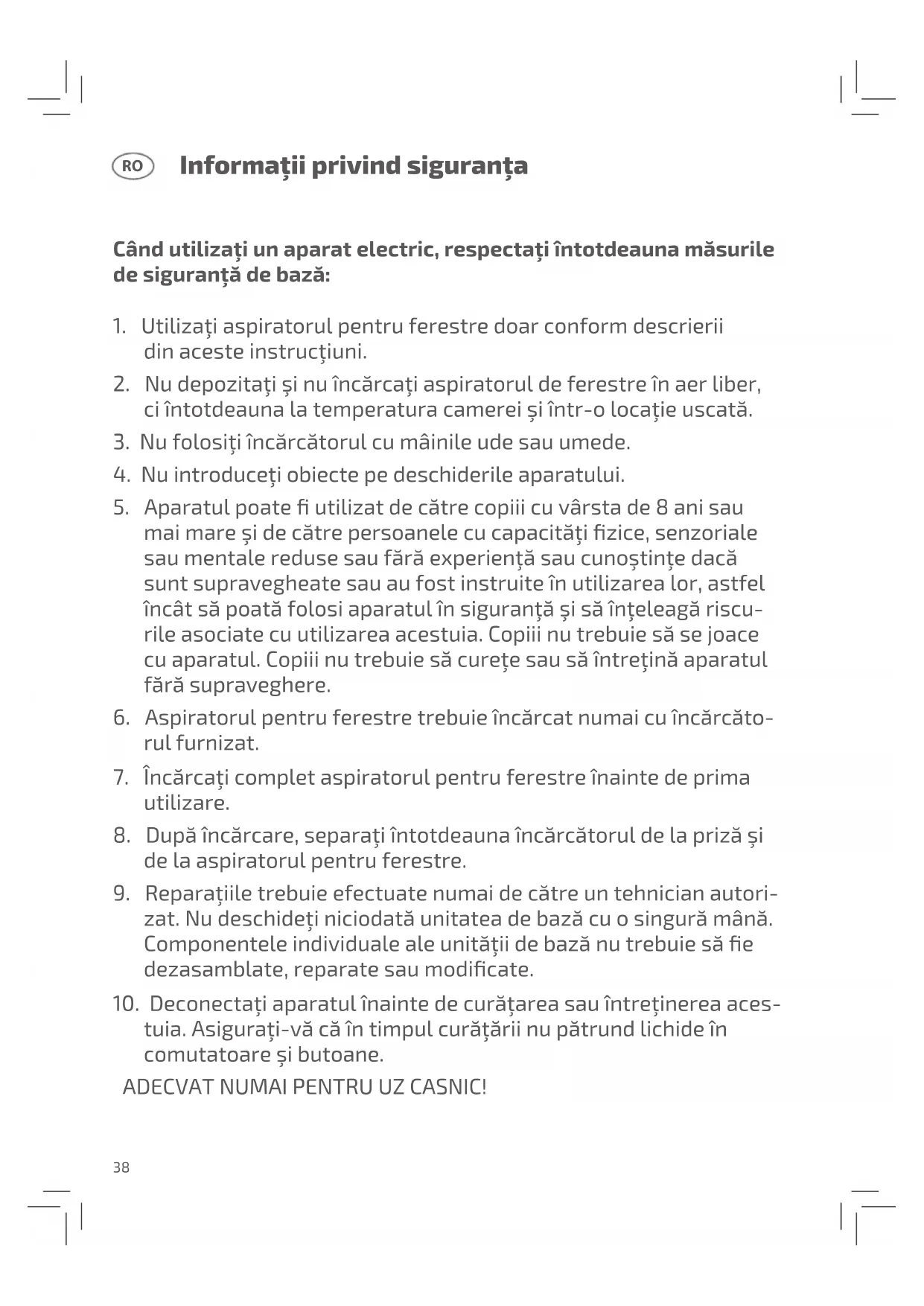 1. Utilizaţi aspiratorul pentru ferestre doar conform descrierii