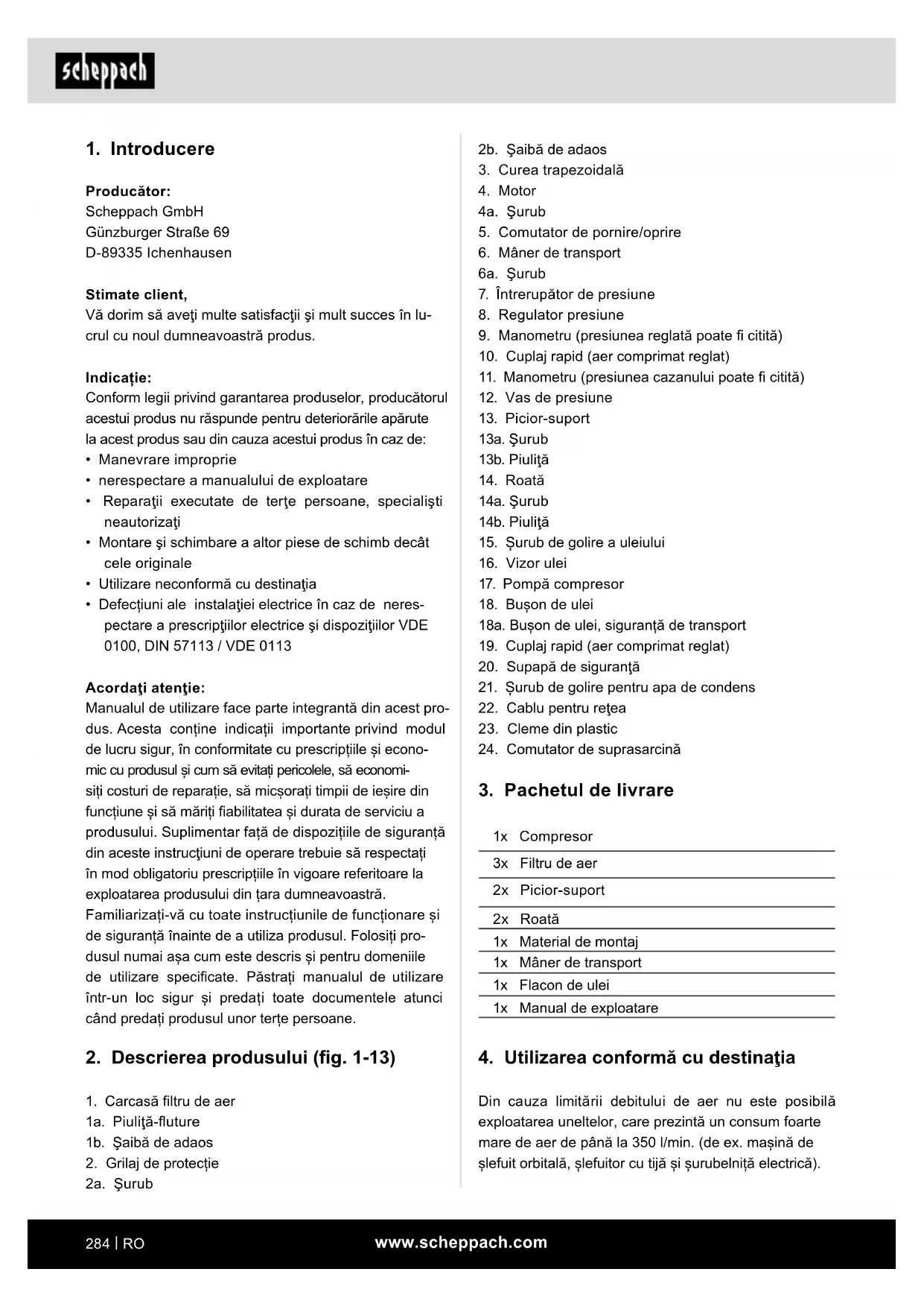 Producător: Scheppach GmbH Günzburger Straße 69 D-89335 Ichenhausen Stimate client, Vă dorim să aveţi multe satisfacţii şi mult succes în lu- crul cu noul dumneavoastră produs. Indicație: Conform legii privind garantarea produselor, producătorul acestui produs nu răspunde pentru deteriorările apărute la acest produs sau din cauza acestui produs în caz de: