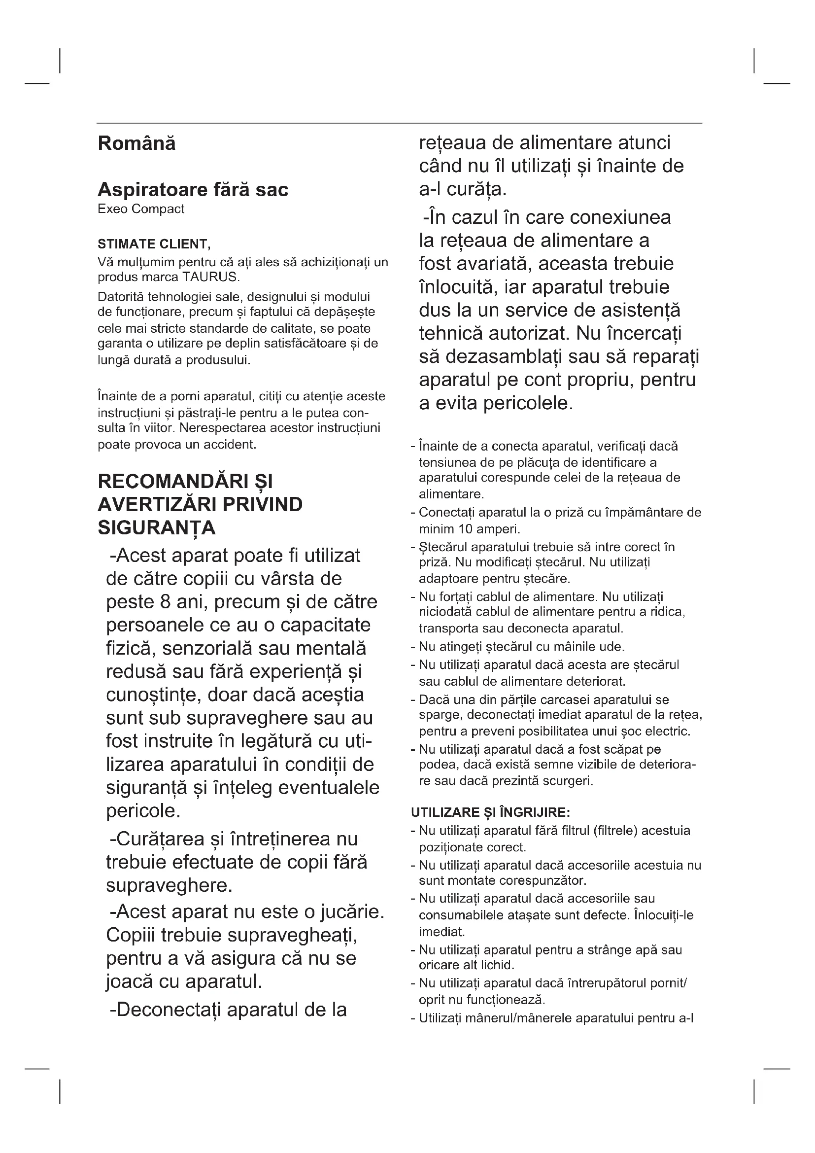 Exeo Compact - Aspirator TAURUS - Manual de utilizare gratuit
