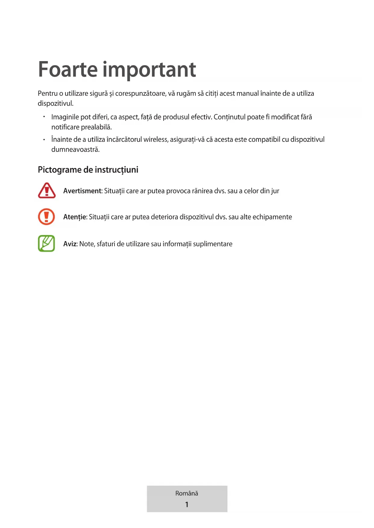 Wszelkie pozostałe znaki towarowe i prawa autorskie należą do ich właścicieli.1 Română Foarte important Pentru o utilizare sigură şi corespunzătoare, vă rugăm să citiți acest manual înainte de a utiliza dispozitivul.