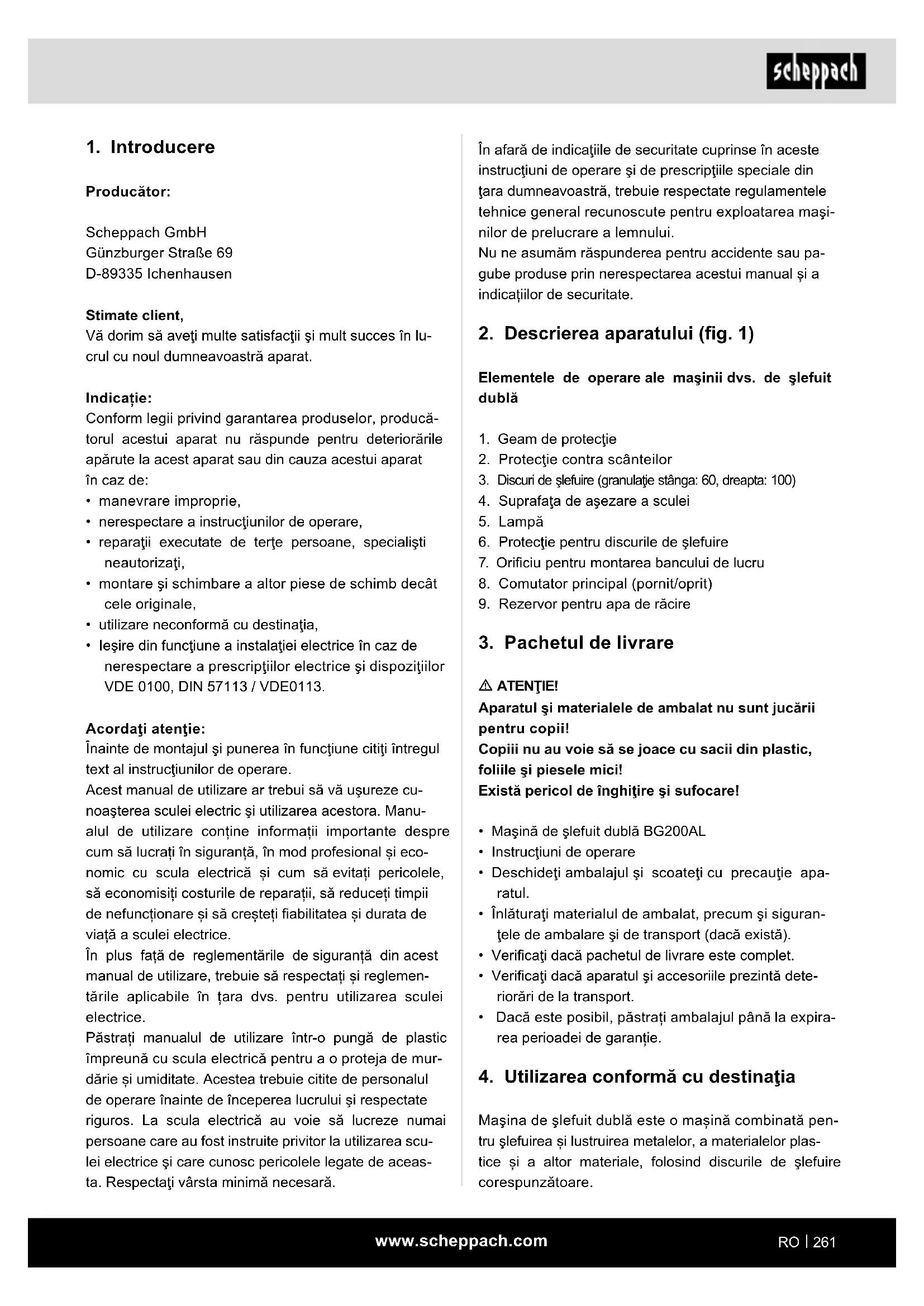MANUAL DE UTILIZARE BG200AL SCHEPPACH