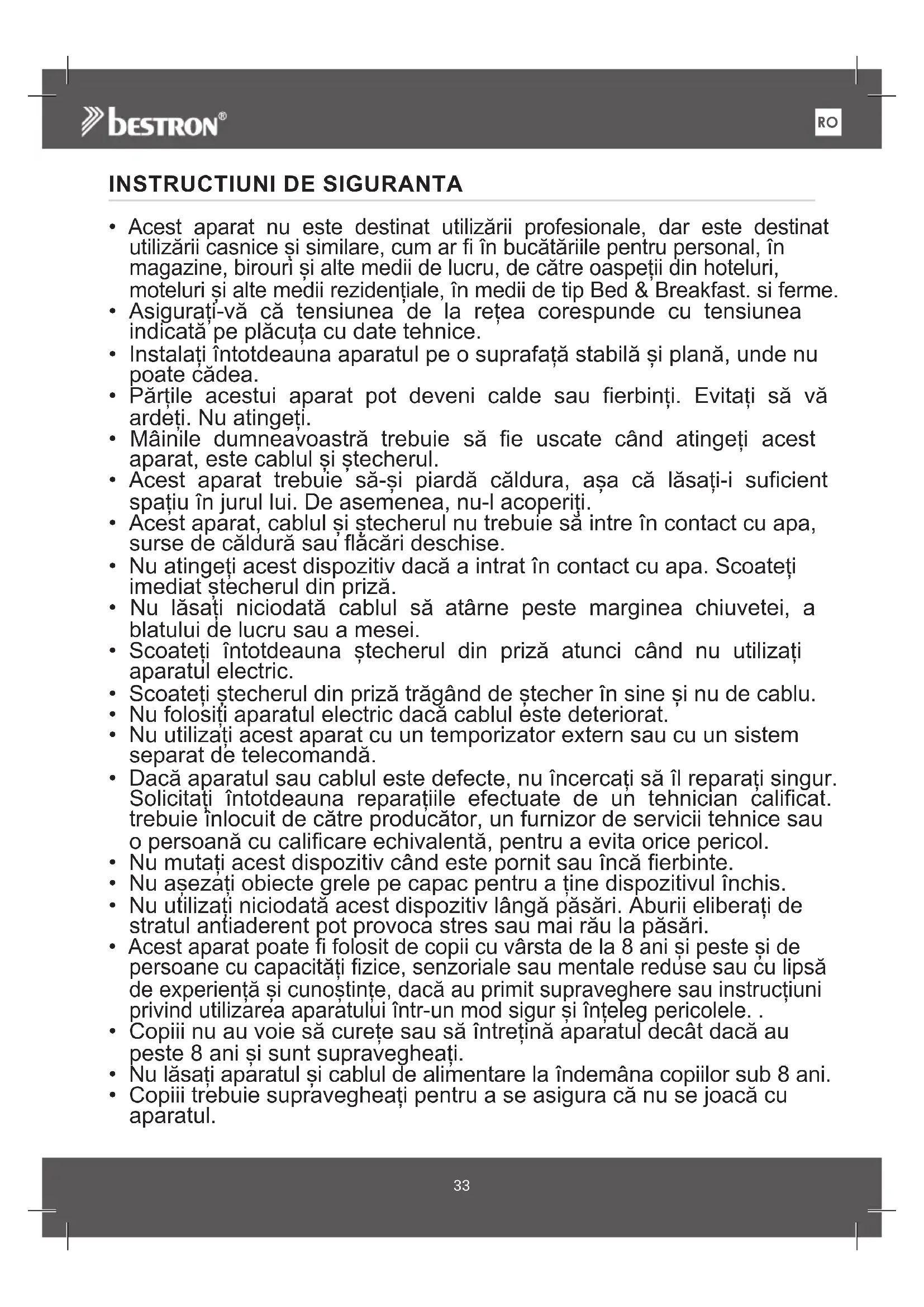 - Copiii trebuie supravegheați pentru a se asigura că nu se joacă cu aparatul.RO
