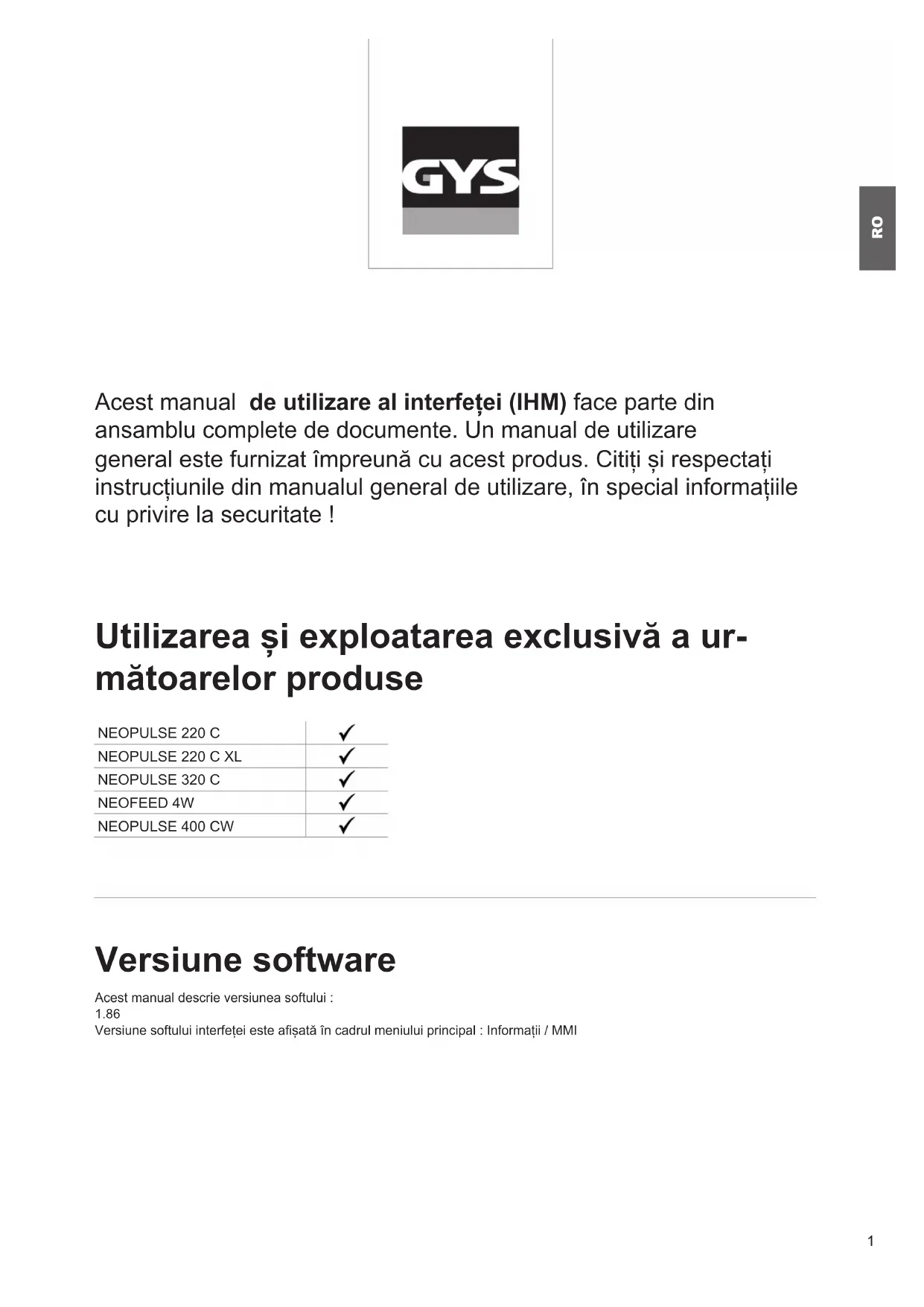 MANUAL DE UTILIZARE Neopulse 320 C GYS