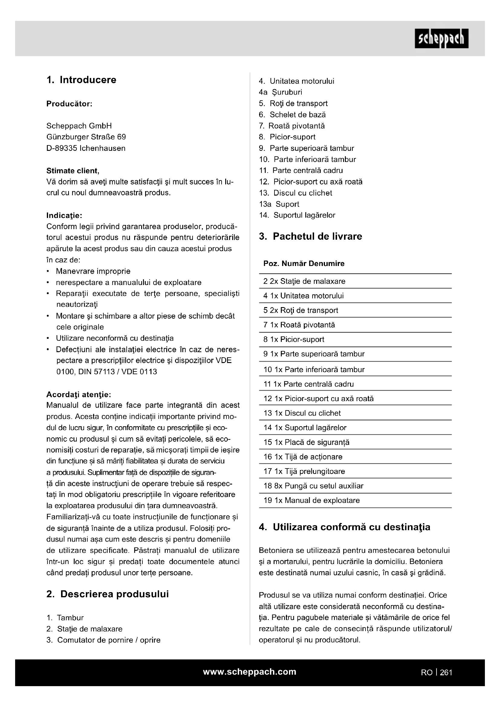 MANUAL DE UTILIZARE MIX180 SCHEPPACH