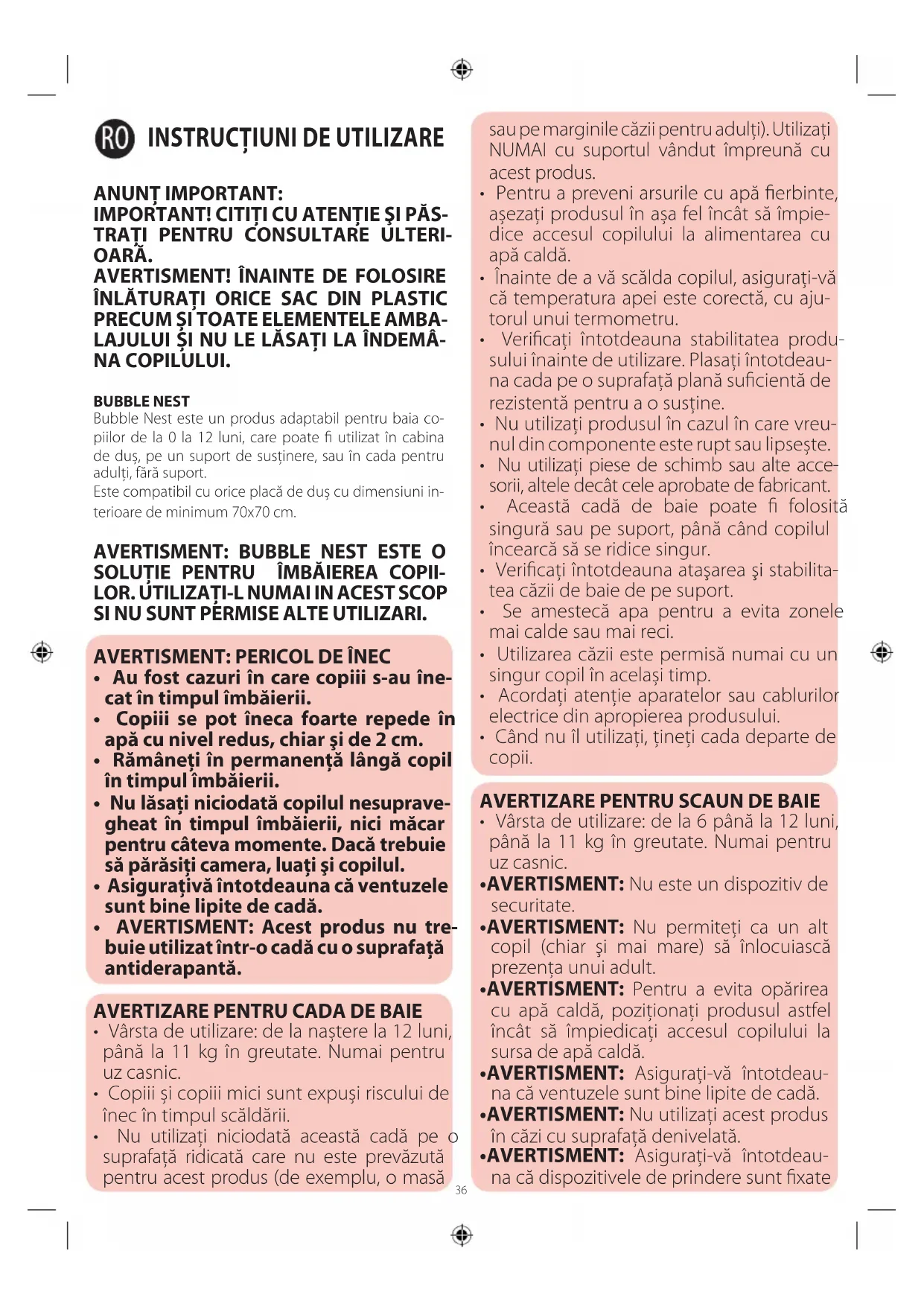 - AVERTISMENT: Utilizaţi acest produs nu- mai atunci când copilul poate să stea în şezut fără ajutor.