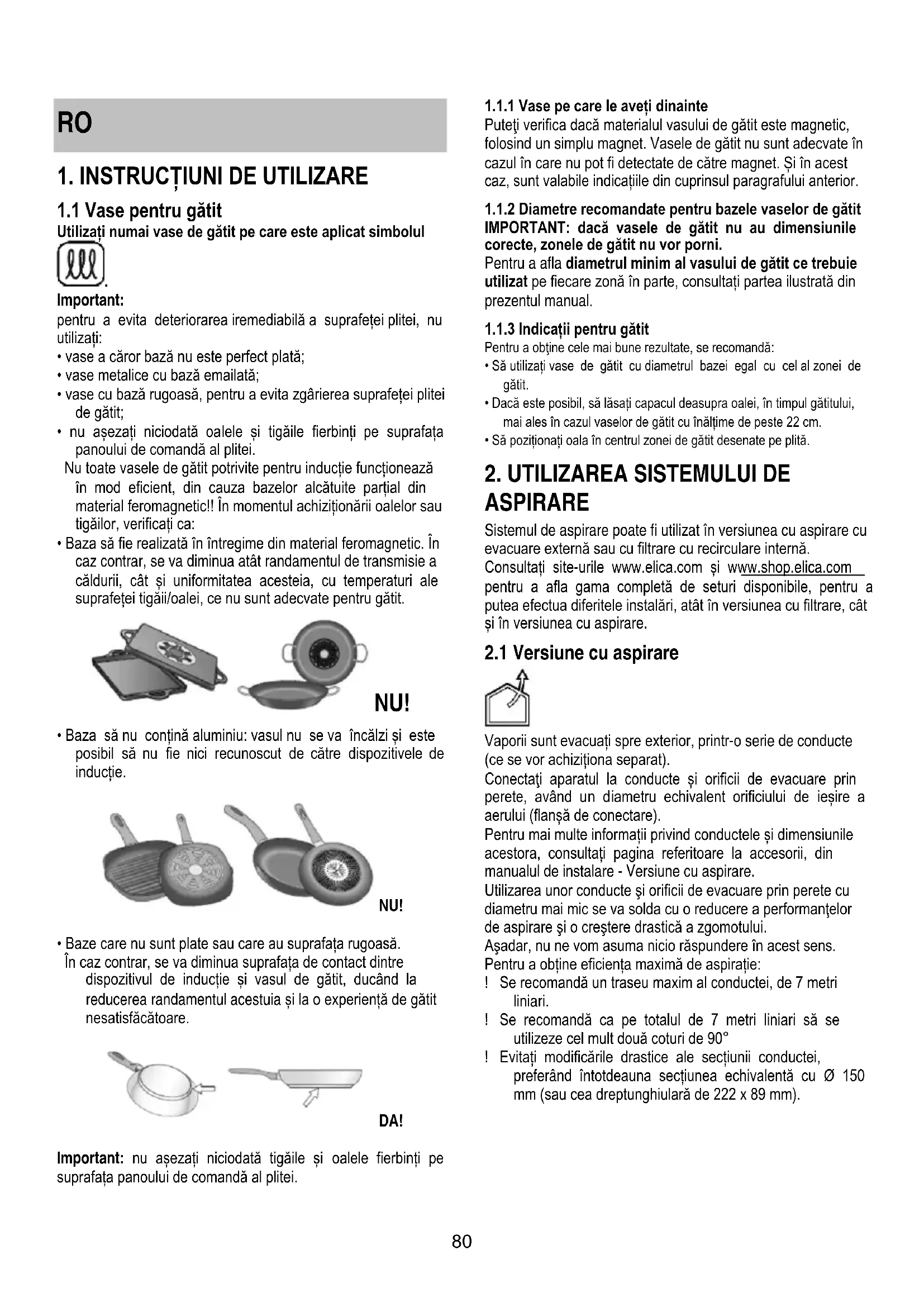 Pentru a afla diametrul minim al vasului de gatit ce trebuie Utilizat pe fiecare zona in parte, consultati partea ilustrata din prezentul manual.