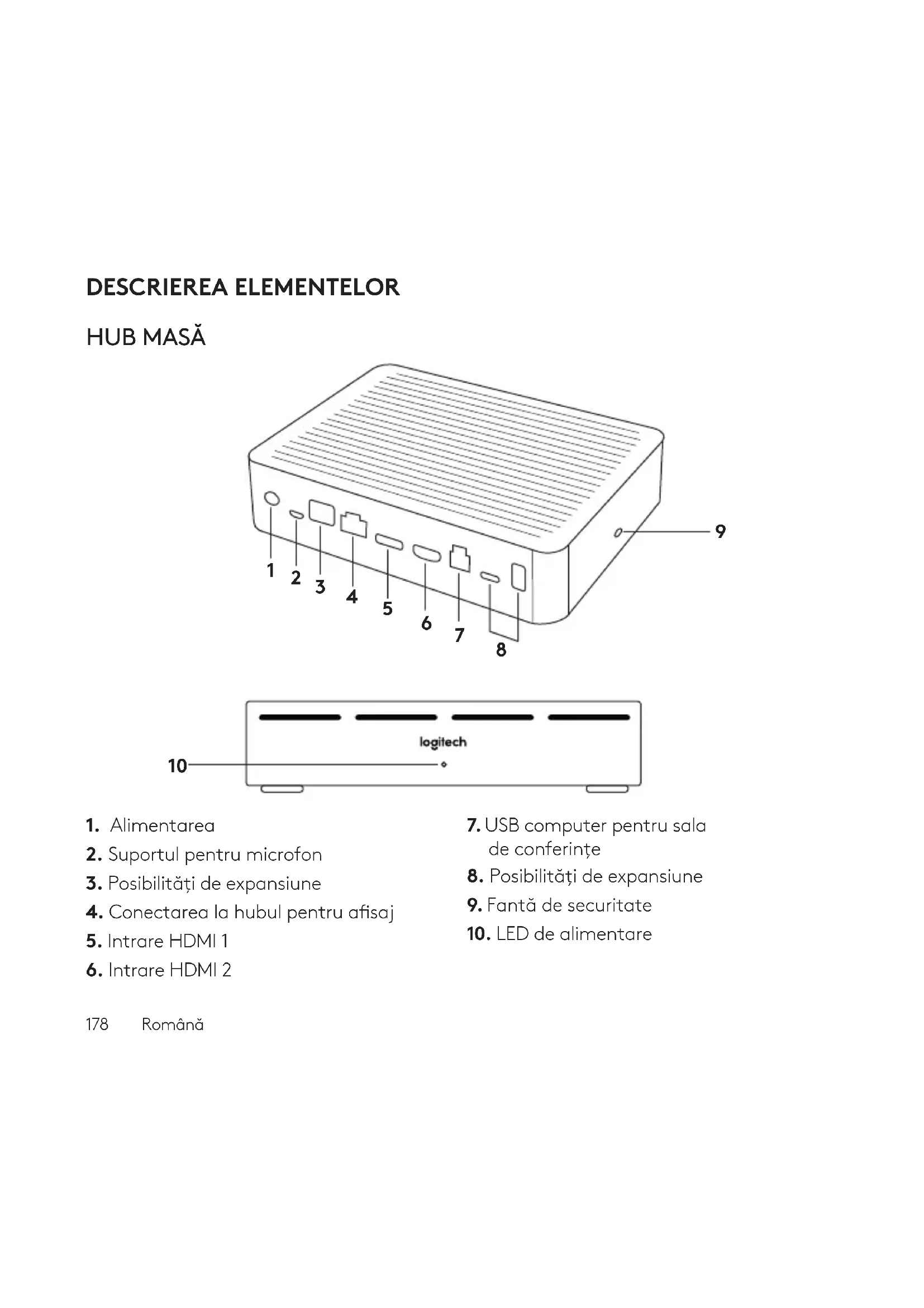 Utilizat pentru rutarea și utilizarea microfoanelor, iar majoritatea cablurilor pentru suporturile pentru microfoane se aă sub masă. Hubul de suporturi pentru microfoane este prevăzut cu 3 mufe jack, care pot conectate la o combinaie de suporturi pentru microfoane sau la huburi de suporturi pentru microfoane.