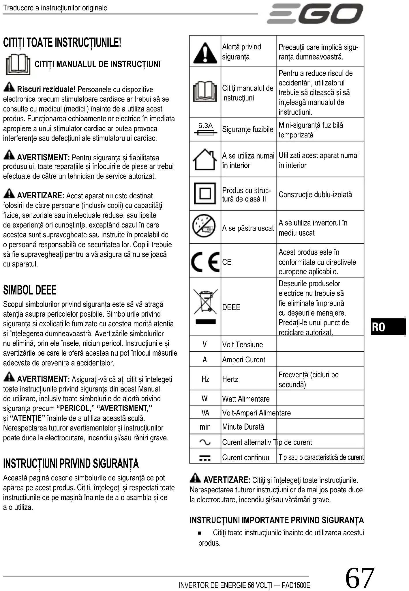 MANUAL DE UTILIZARE PAD1501E EGO