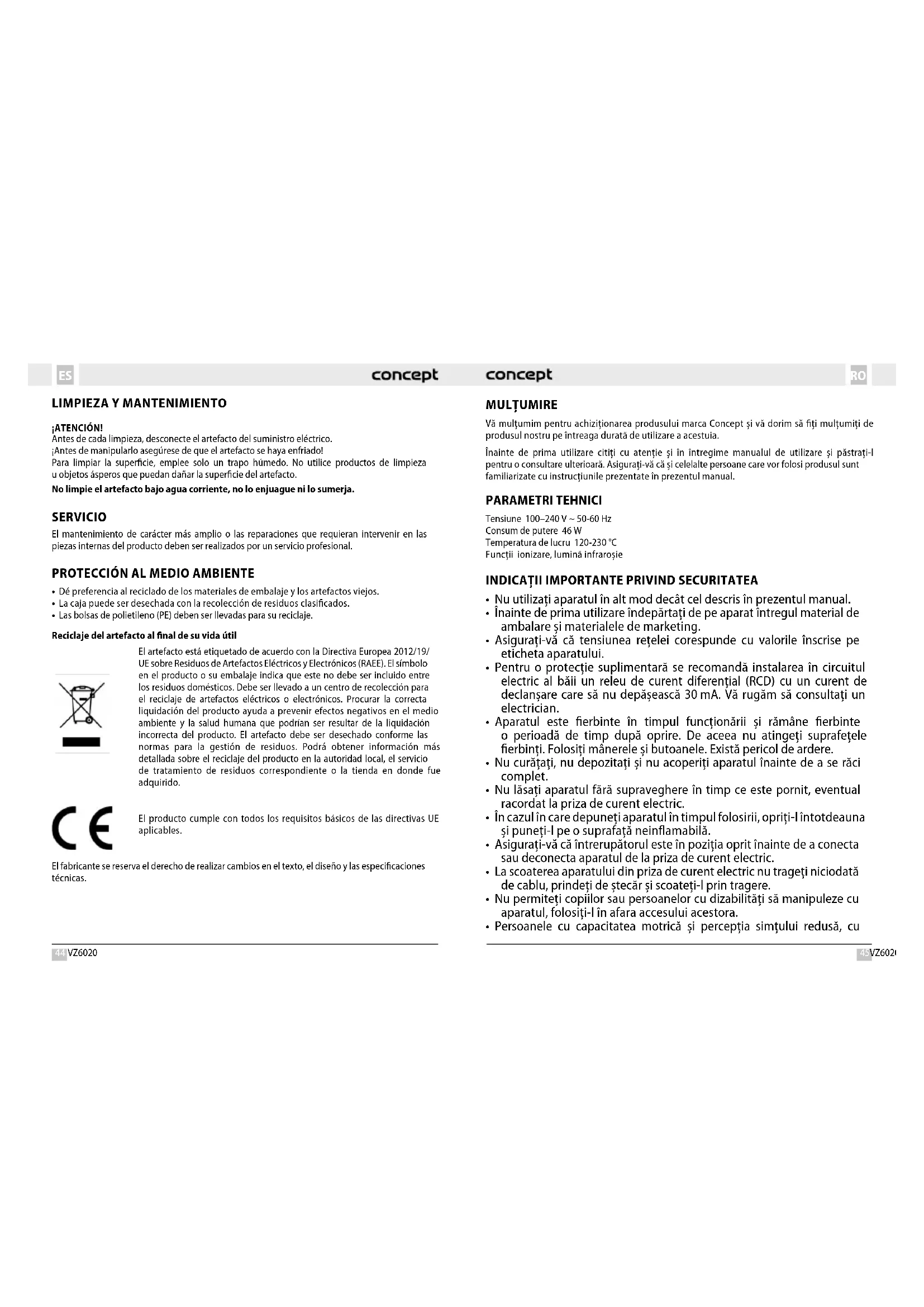 Elite VZ6020 - Placă de îndreptat părul Concept - Manual de utilizare gratuit
