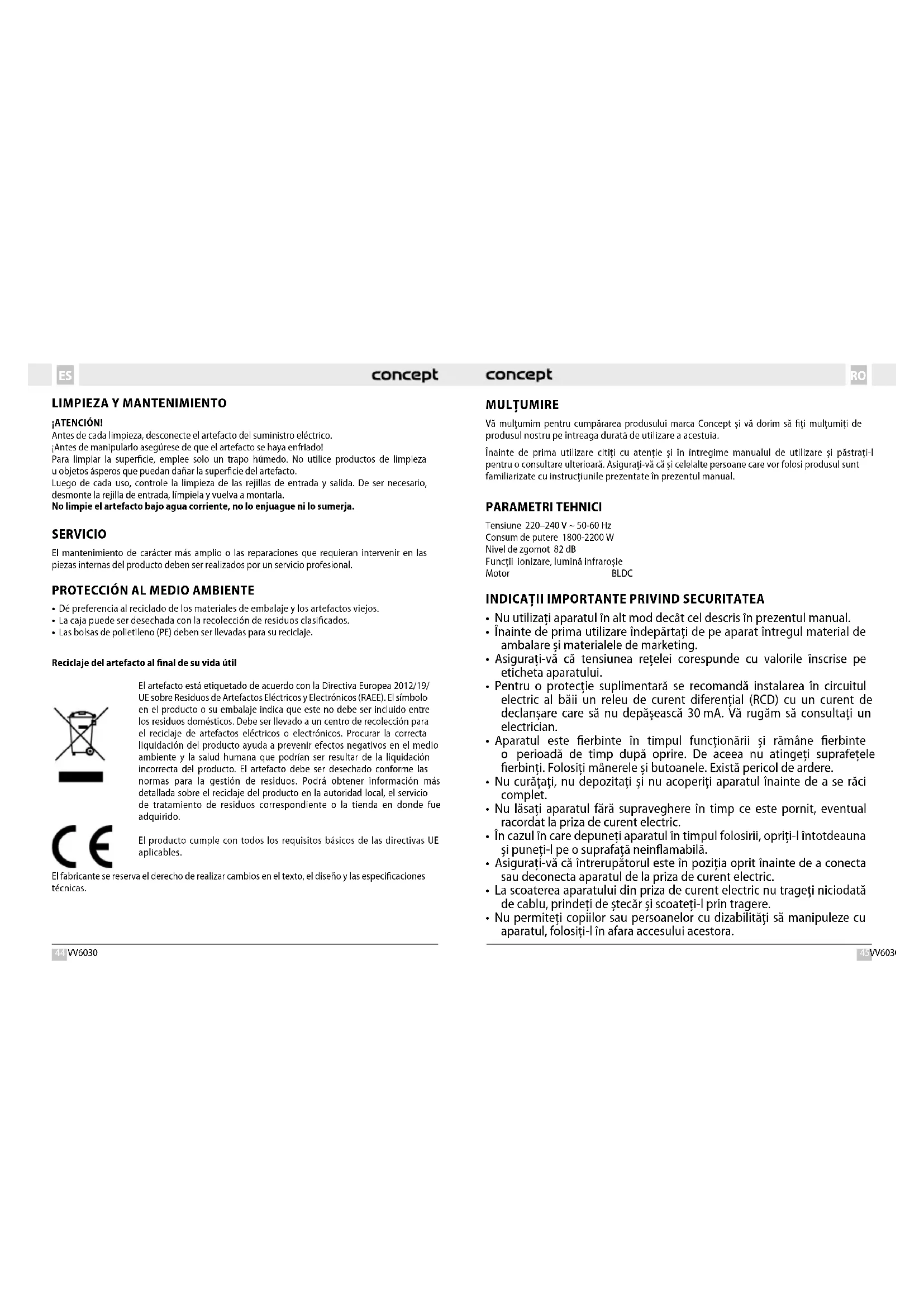 Descărcați instrucțiunile pentru Uscător de păr în format PDF gratuit! Găsiți manualul dvs. Elite VV6030 - Concept și luați din nou în mână dispozitivul dvs. electronic. Pe această pagină sunt publicate toate documentele necesare pentru utilizarea dispozitivului dvs. Elite VV6030 mărcii Concept.
