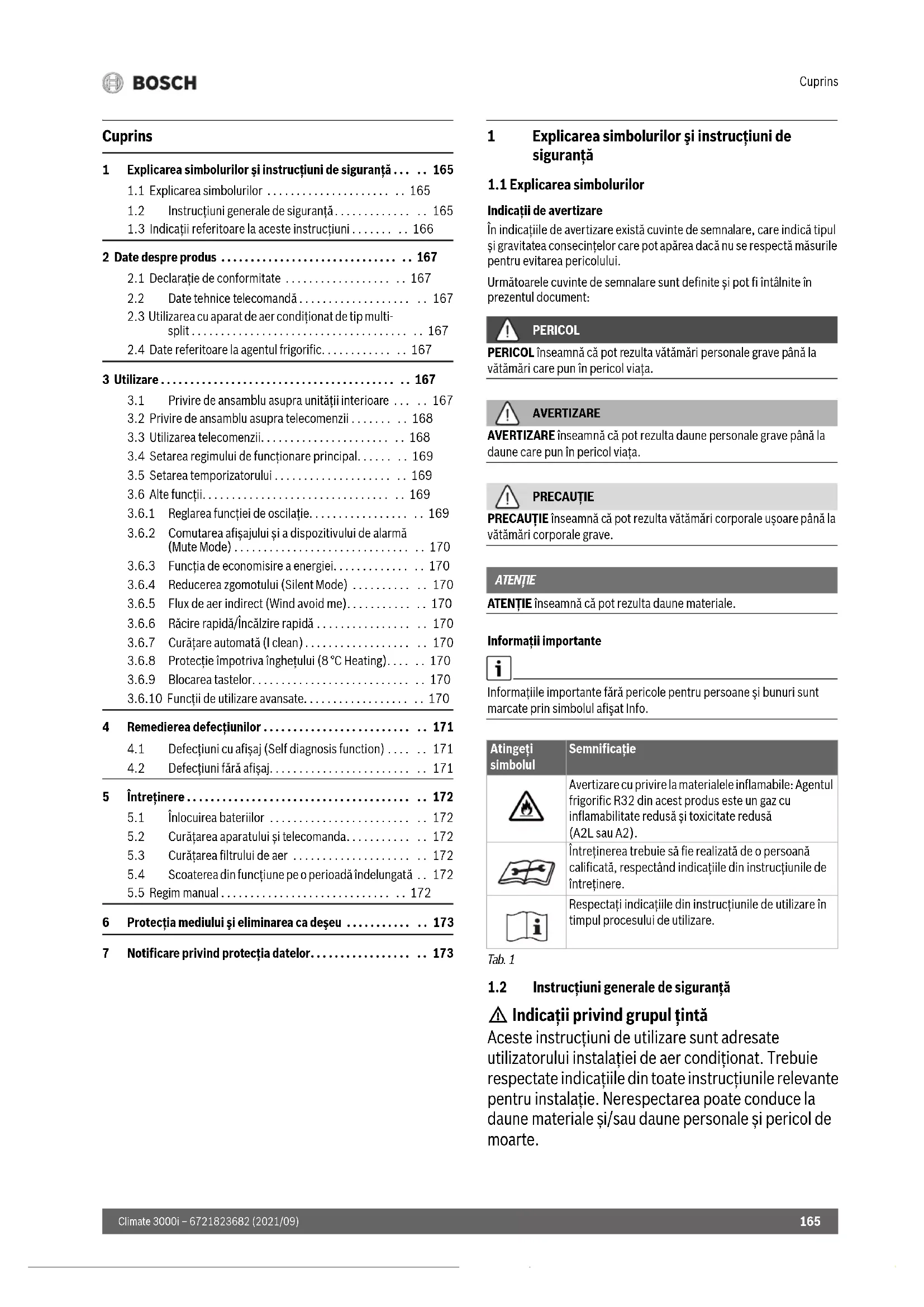 Climate 3000i – 6721823682 (2021/09) Cuprins 1 Explicarea simbolurilor şi instrucţiuni de siguranţă