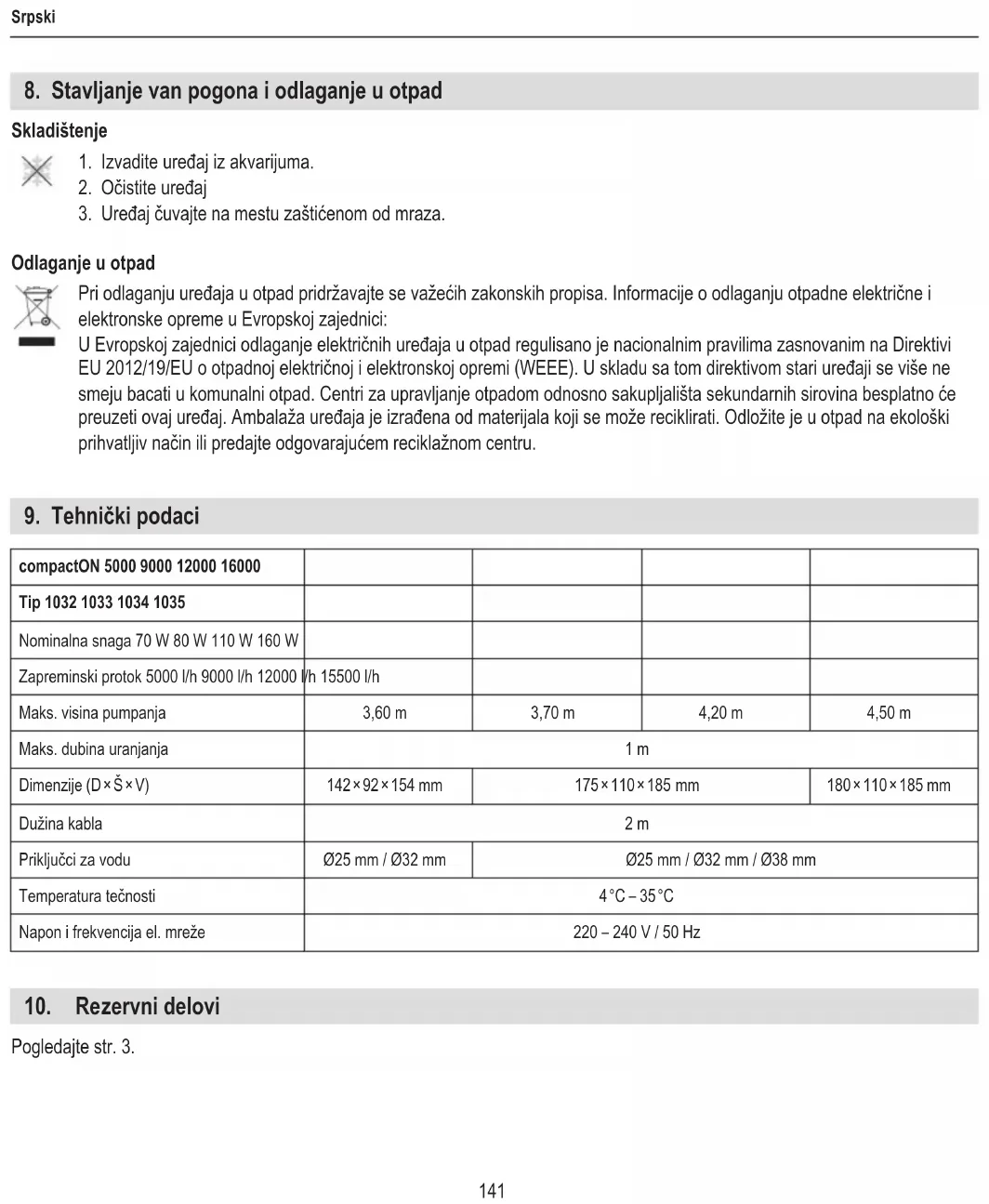 Pogledajte str. 3.142 Română Manual de utilizare (traducere) Pompă universală compactON 5000/9000/12000/16000