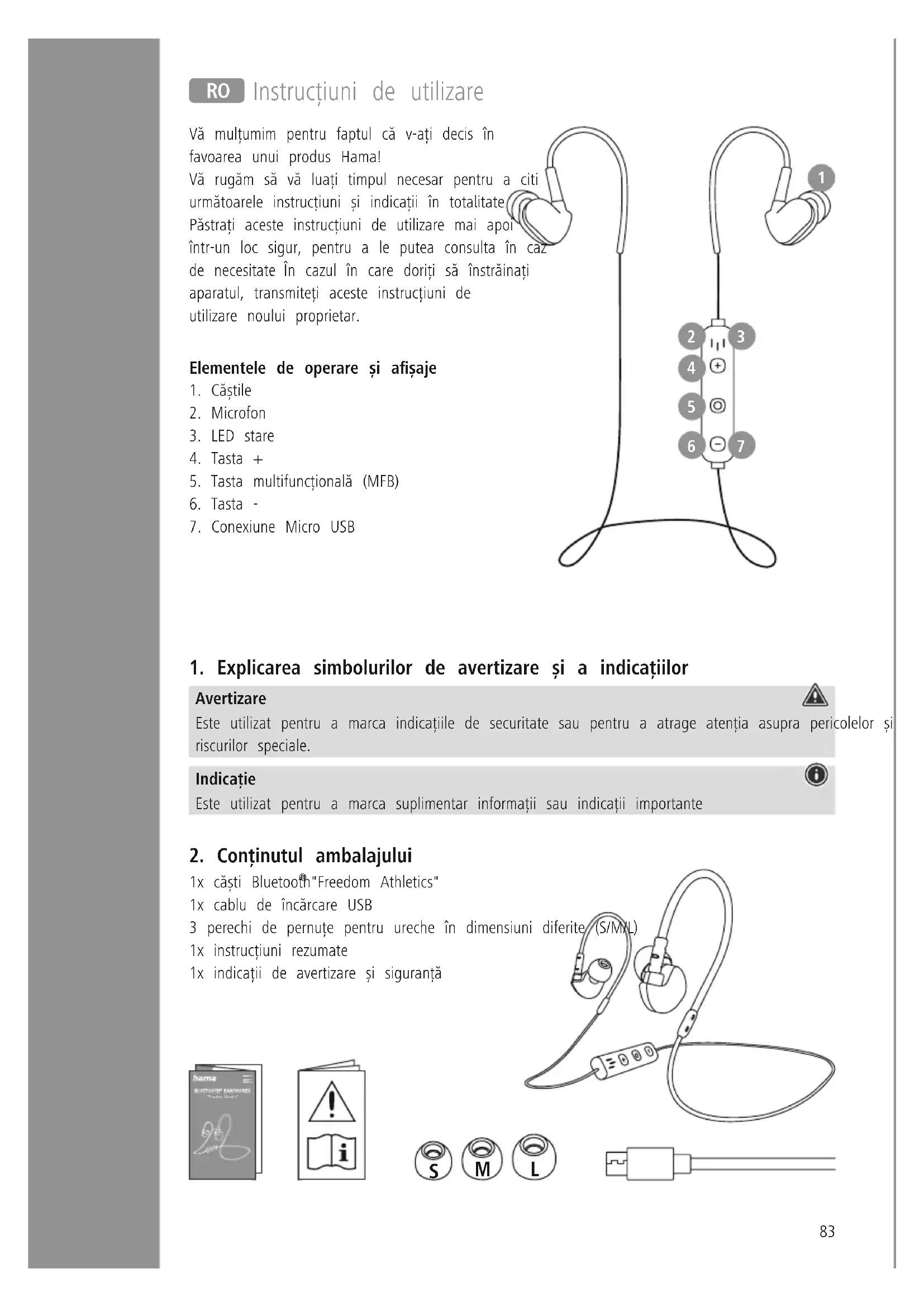 1. Explicarea simbolurilor de avertizare și a indicațiilor