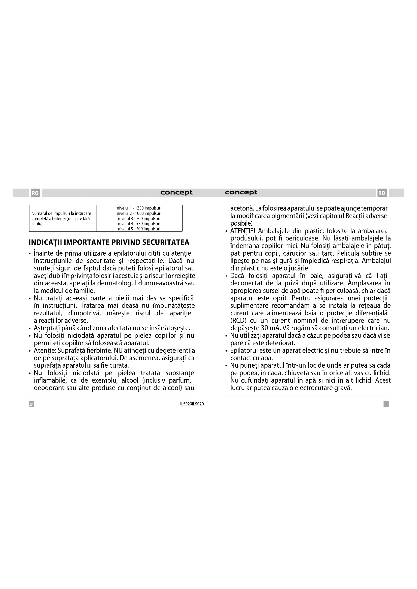 MANUAL DE UTILIZARE Perfect Skin IL5020 Concept