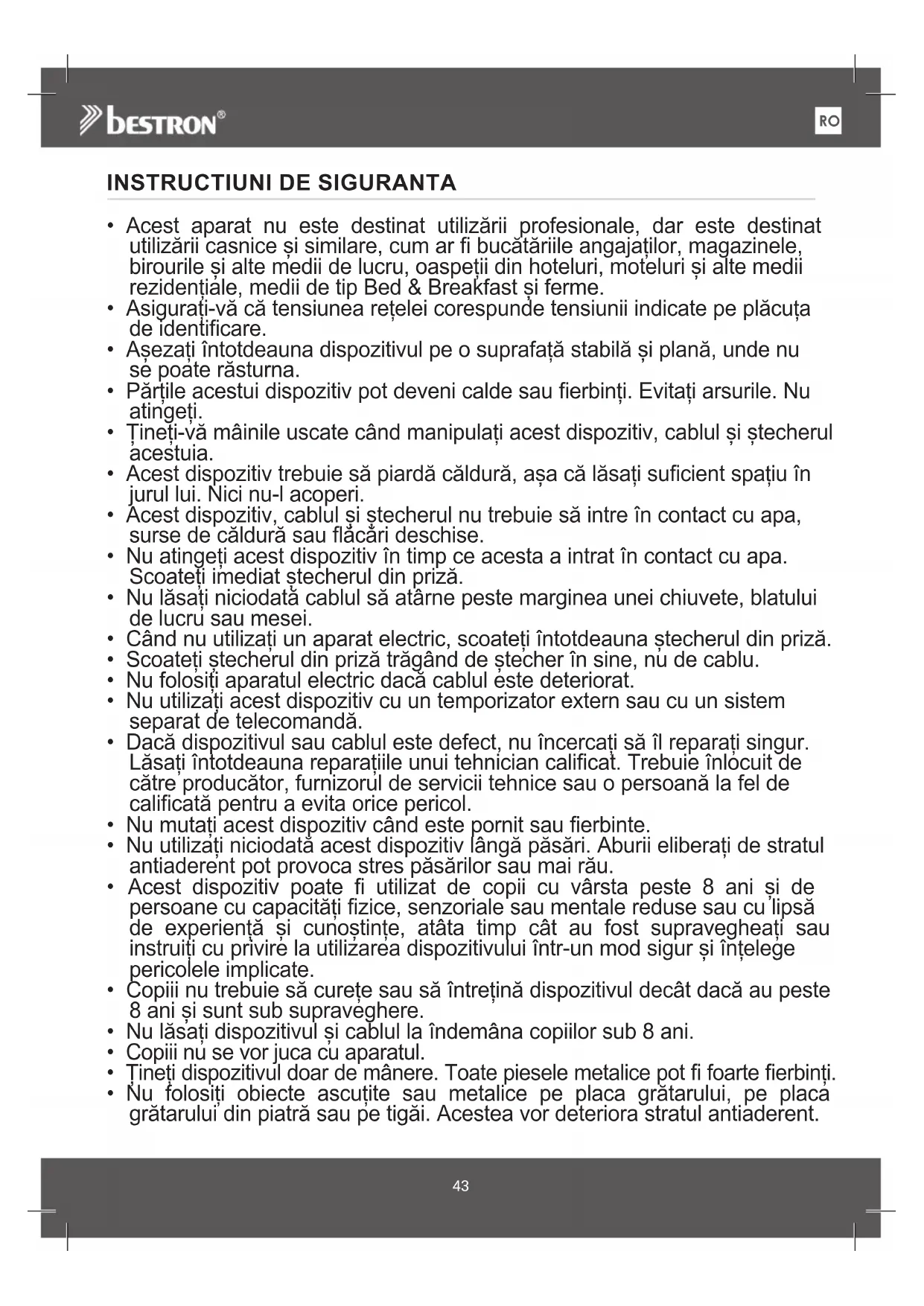 ABP605 - Plită de grătar BESTRON - Manual de utilizare gratuit