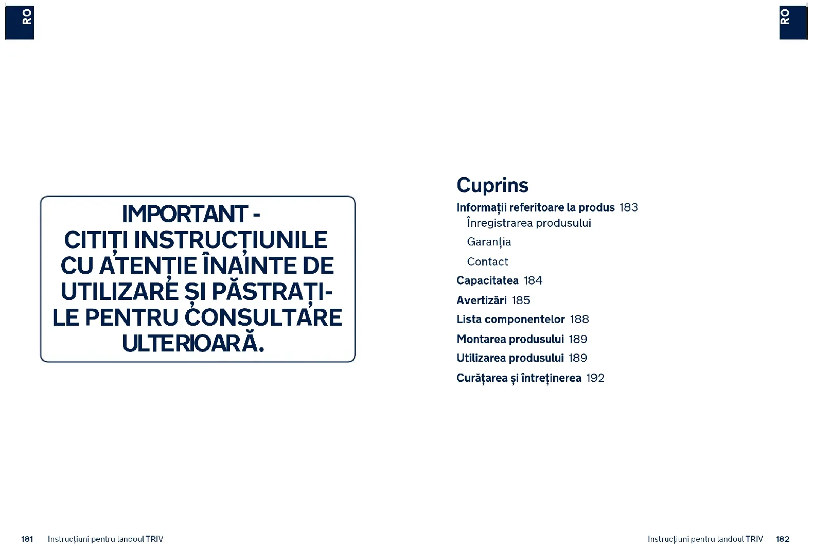 ULTERIOARĂ.183 Instrucțiuni pentru landoul TRIV 184Instrucțiuni pentru landoul TRIV