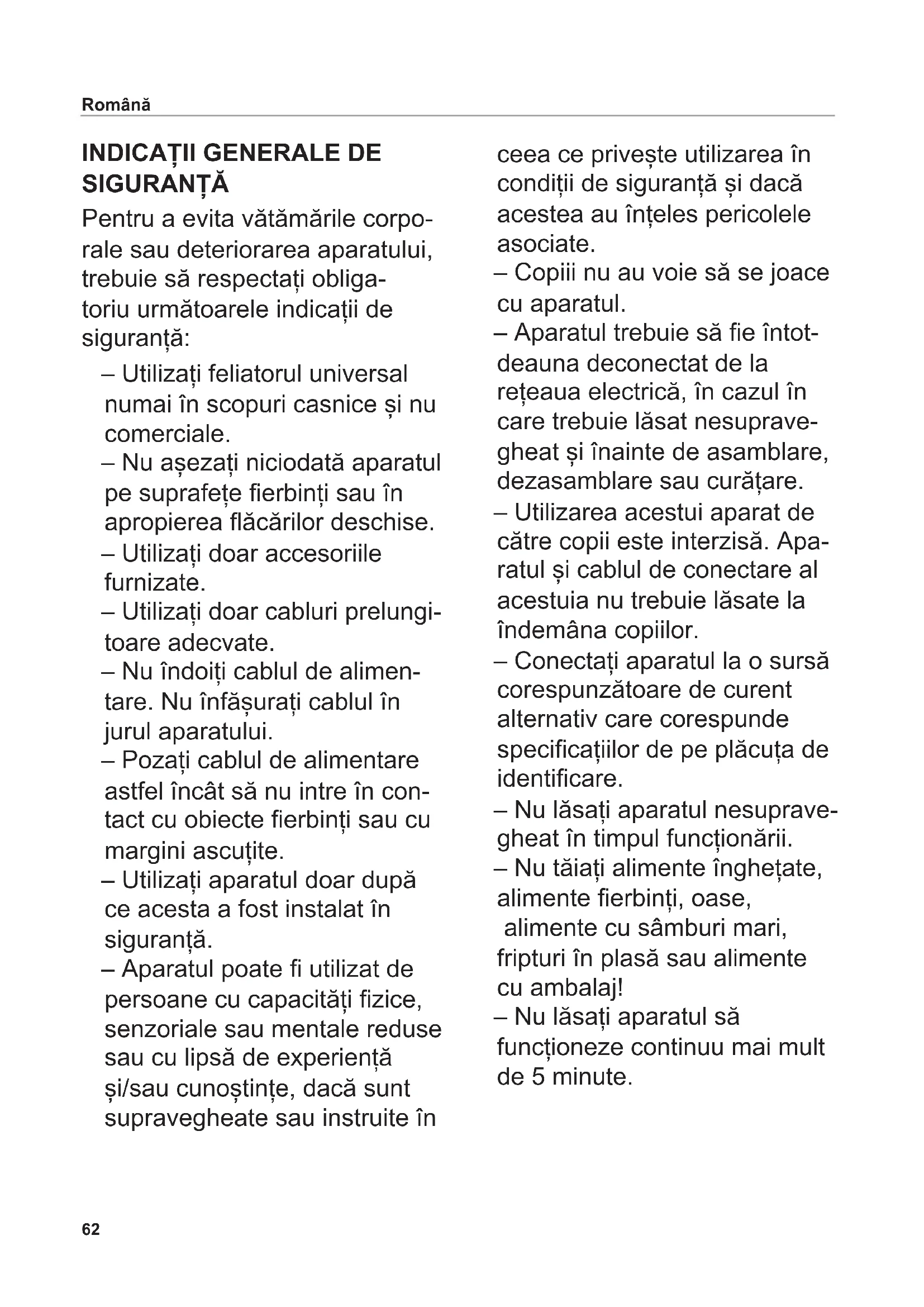 Instrucțiuni de utilizare ................................. 62