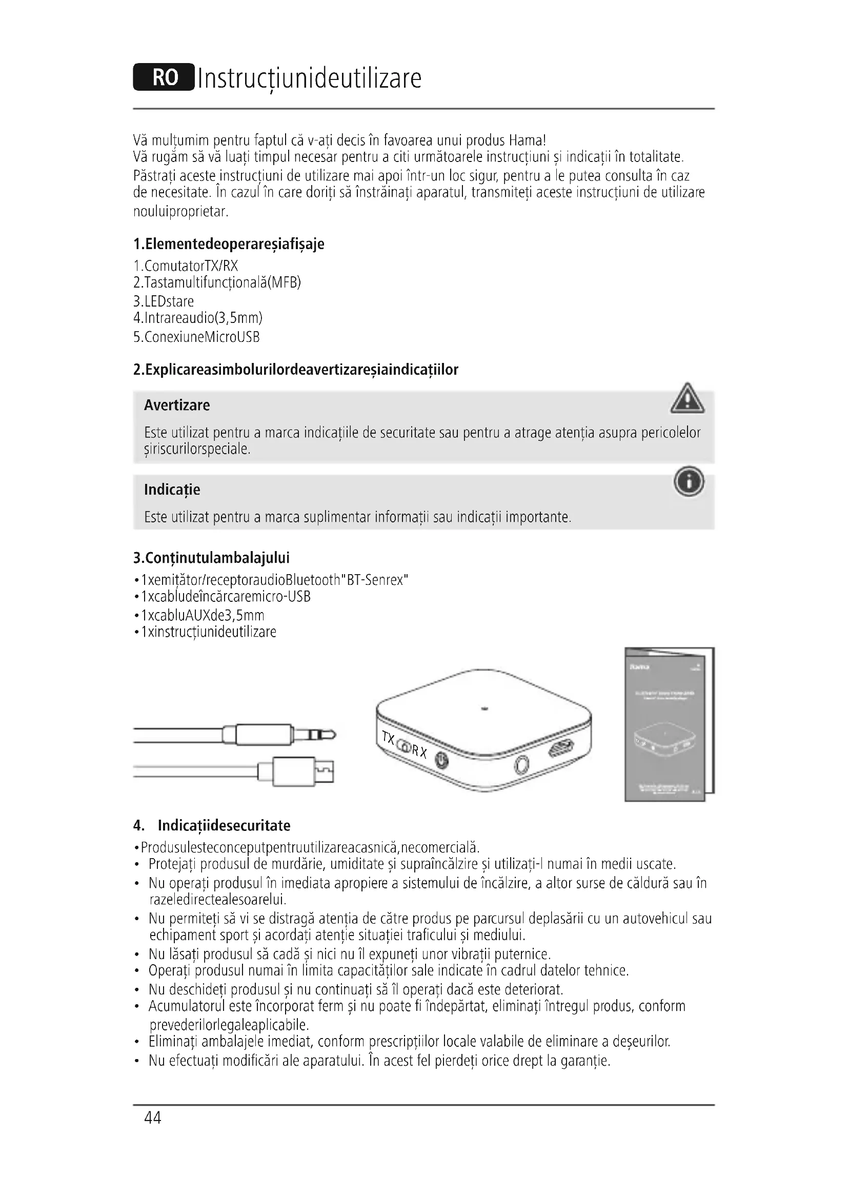 BTSenrex - Neclasificat HAMA - Manual de utilizare gratuit