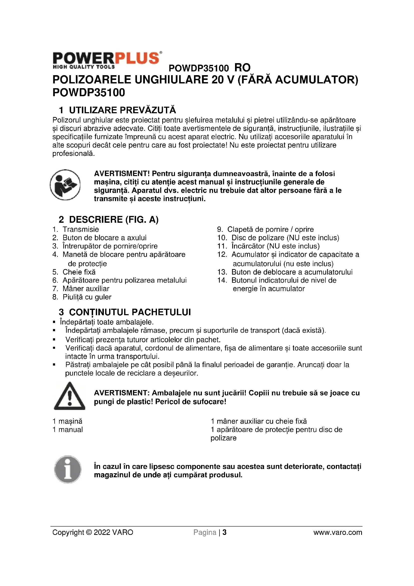 MANUAL DE UTILIZARE POWDP35100 PowerPlus