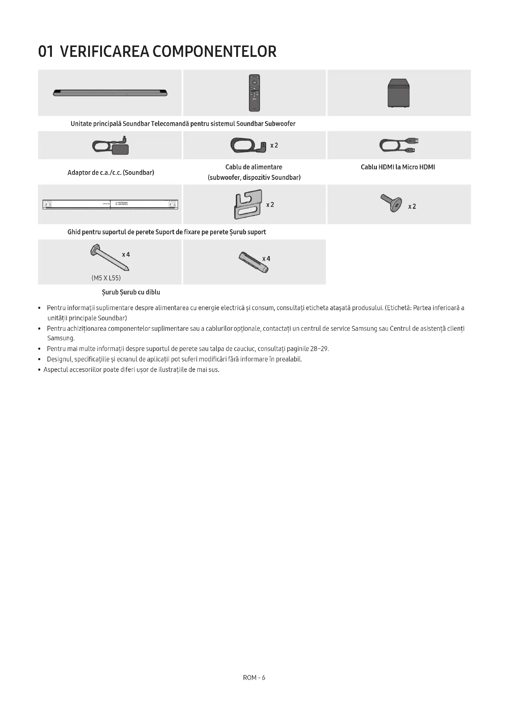 - Aspectul accesoriilor poate diferi ușor de ilustrațiile de mai sus.ROM - 7