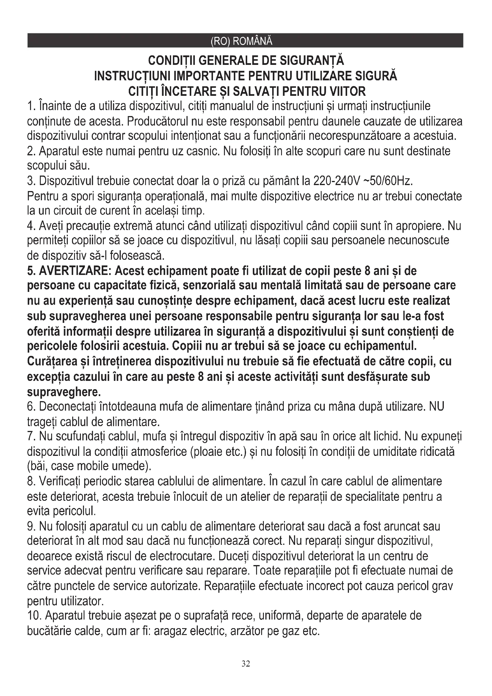 5. AVERTIZARE: Acest echipament poate fi utilizat de copii peste 8 ani și de