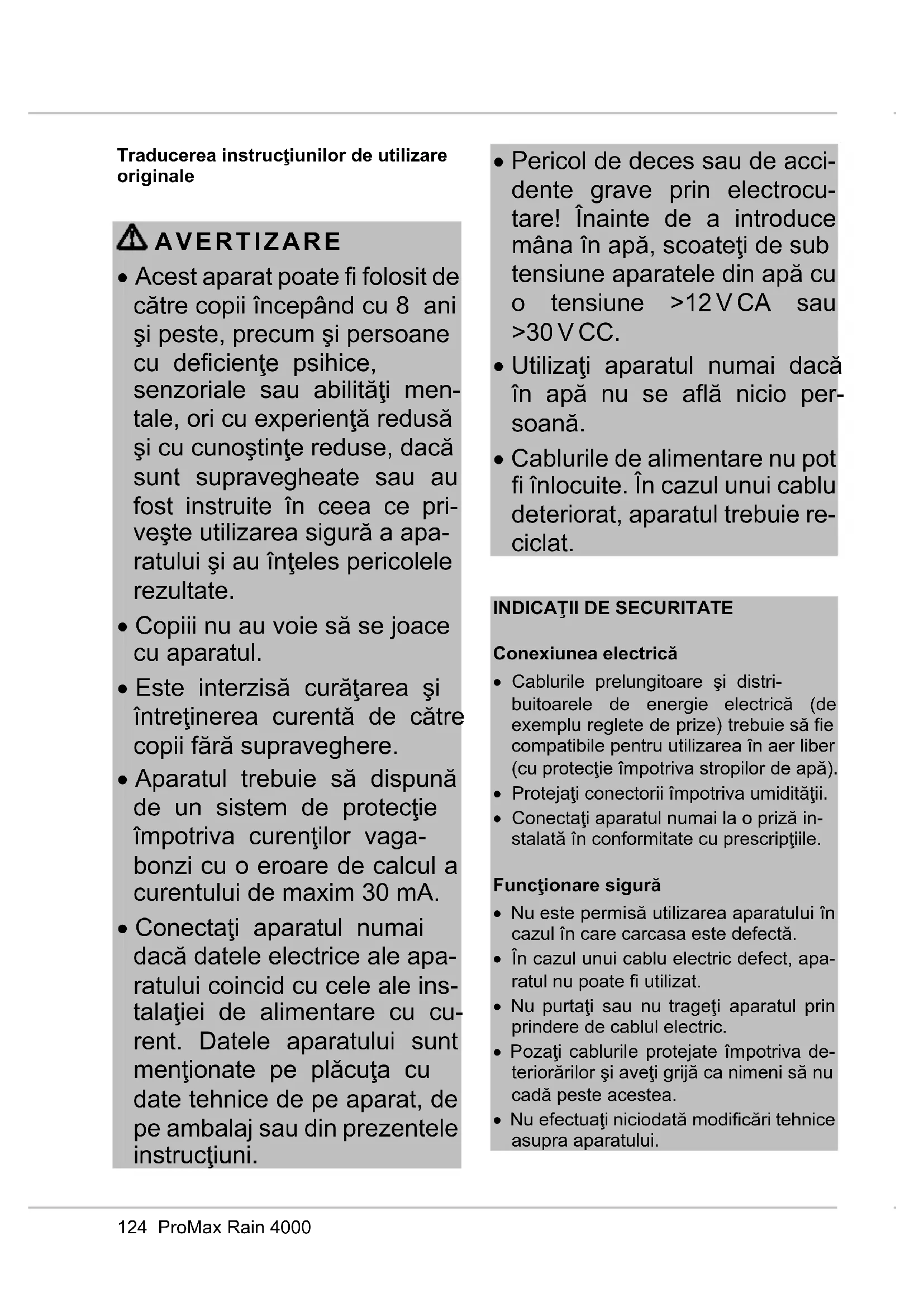 - Reciclaţi aparatul prin intermediul si- stemului de recuperare prevăzut.130 ProMax Rain 4000