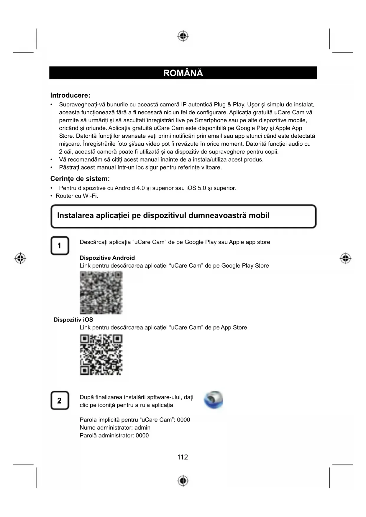 Descărcaţi aplicaţia “uCare Cam” de pe Google Play sau Apple app store Dispozitive Android Link pentru descărcarea aplicaţiei “uCare Cam” de pe Google Play Store Dispozitiv iOS Link pentru descărcarea aplicaţiei “uCare Cam” de pe App Store