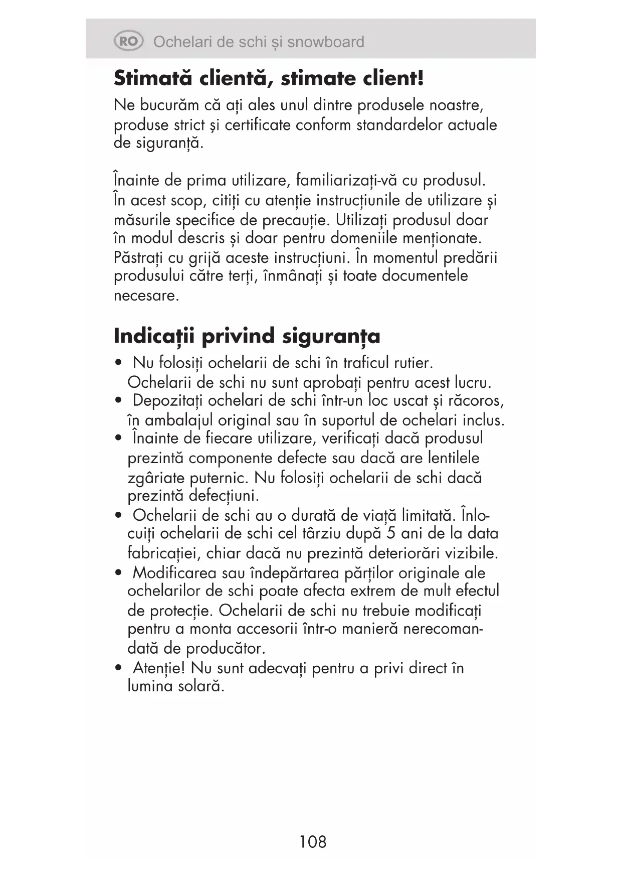 - Nu folosiți ochelarii de schi în tracul rutier. Ochelarii de schi nu sunt aprobați pentru acest lucru.