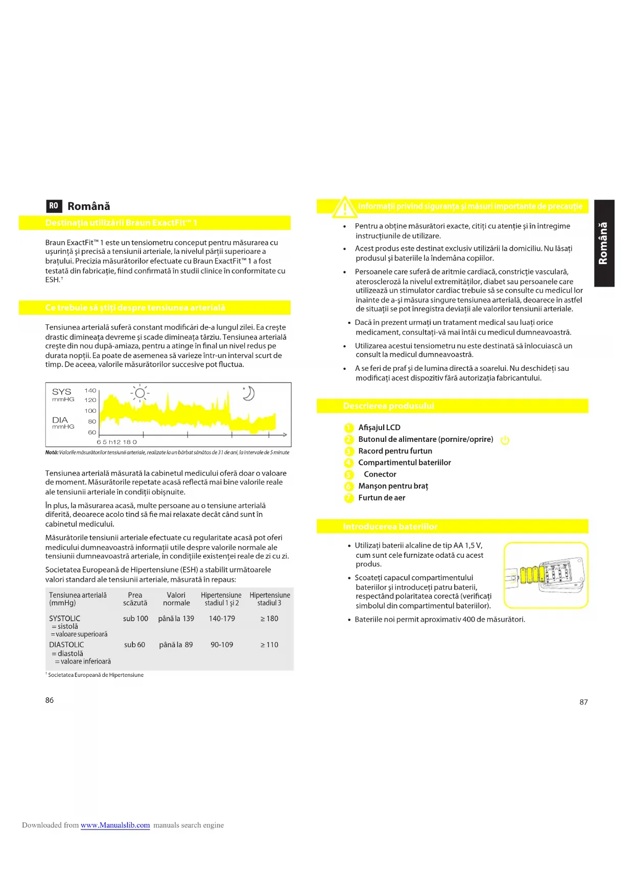 - Bateriile noi permit aproximativ 400 de măsurători. Română Downloaded from www.Manualslib.com manuals search engine88
