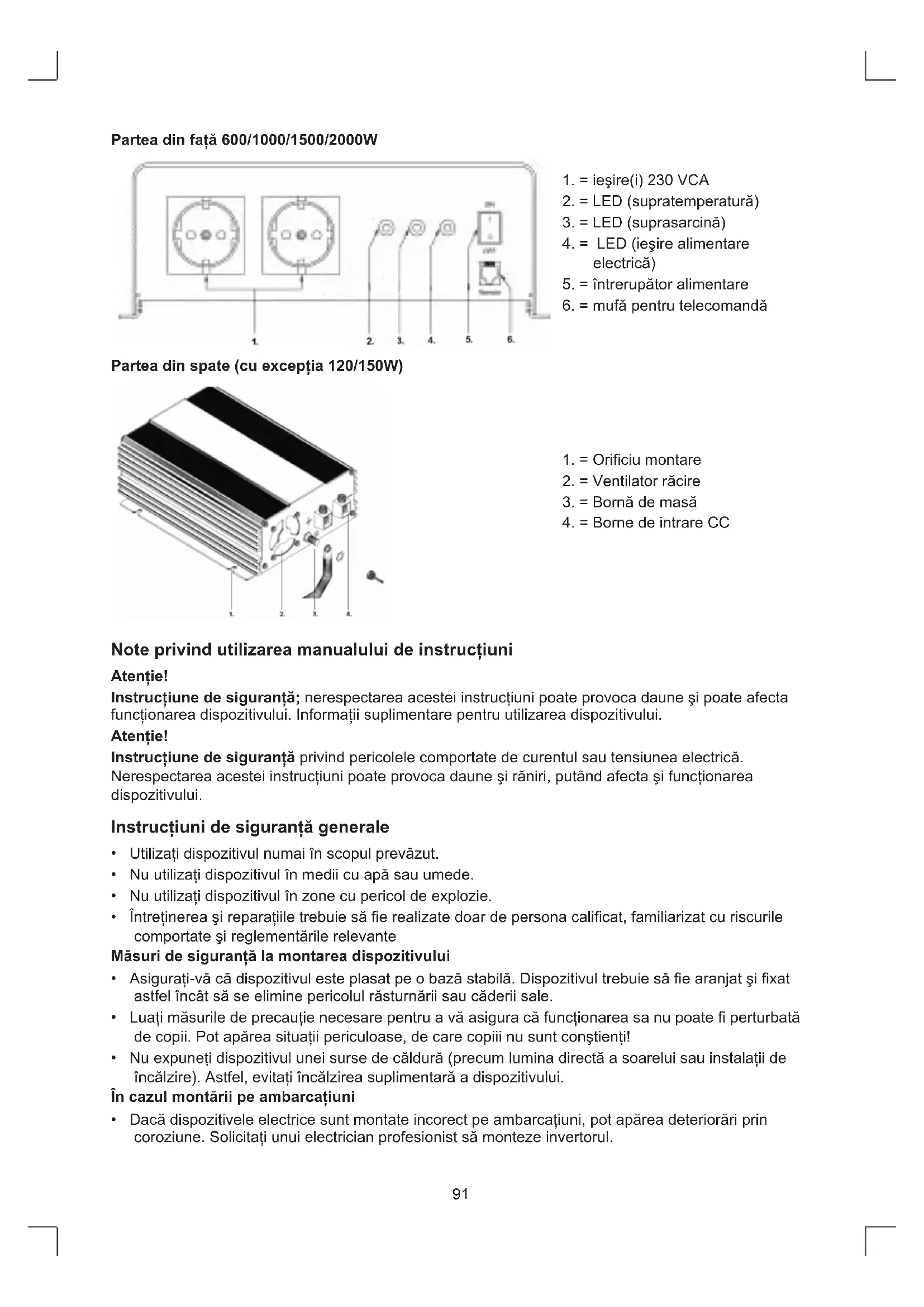 - Invertorul trebuie sā fie montat intr-un loc uscat Şi curat, fāra a fi expus umiditäti.