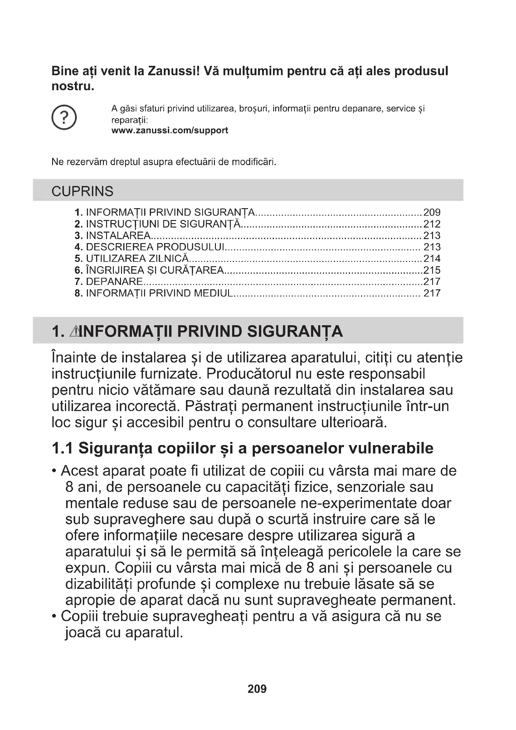 - Copiii trebuie supravegheați pentru a vă asigura că nu se joacă cu aparatul. 209• Nu lăsați ambalajele la îndemâna copiilor și aruncați-le conform reglementărilor.