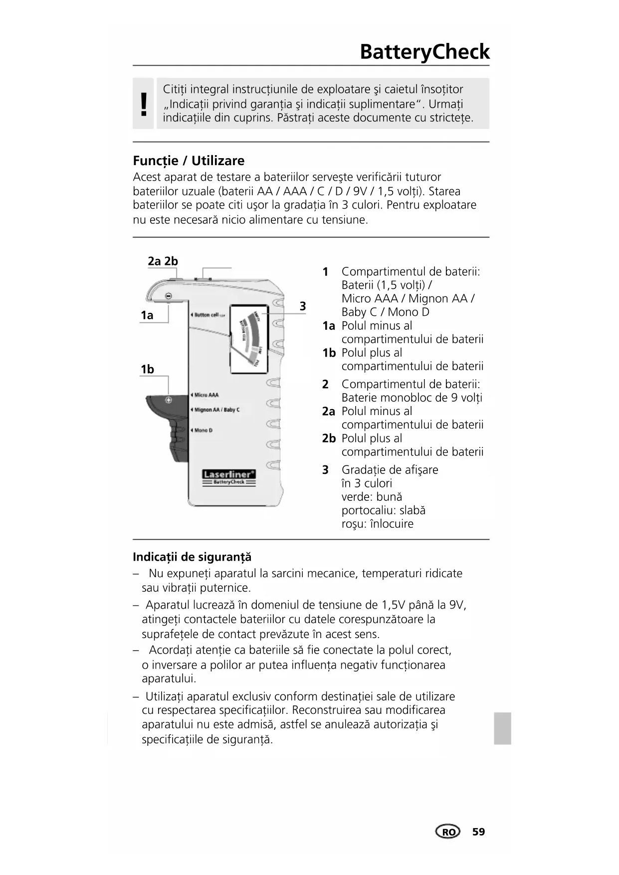 MANUAL DE UTILIZARE BatteryCheck Laserliner