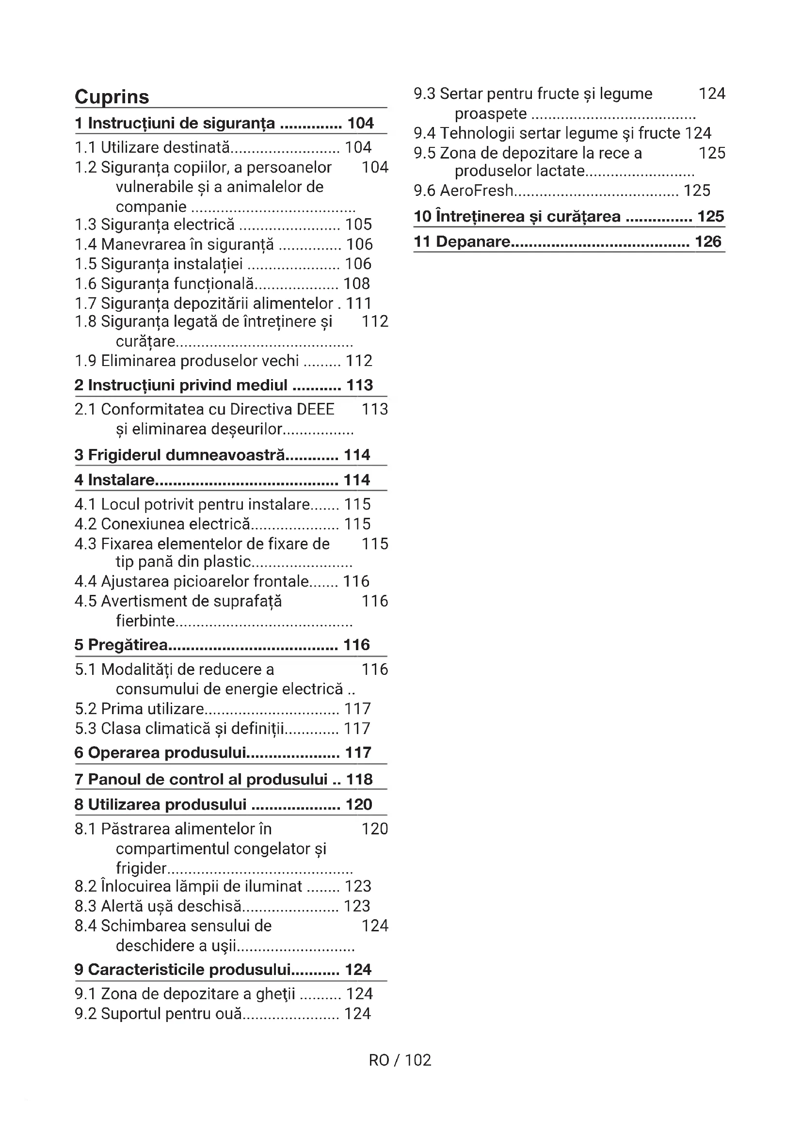 2 Instrucțiuni privind mediul ........... 113