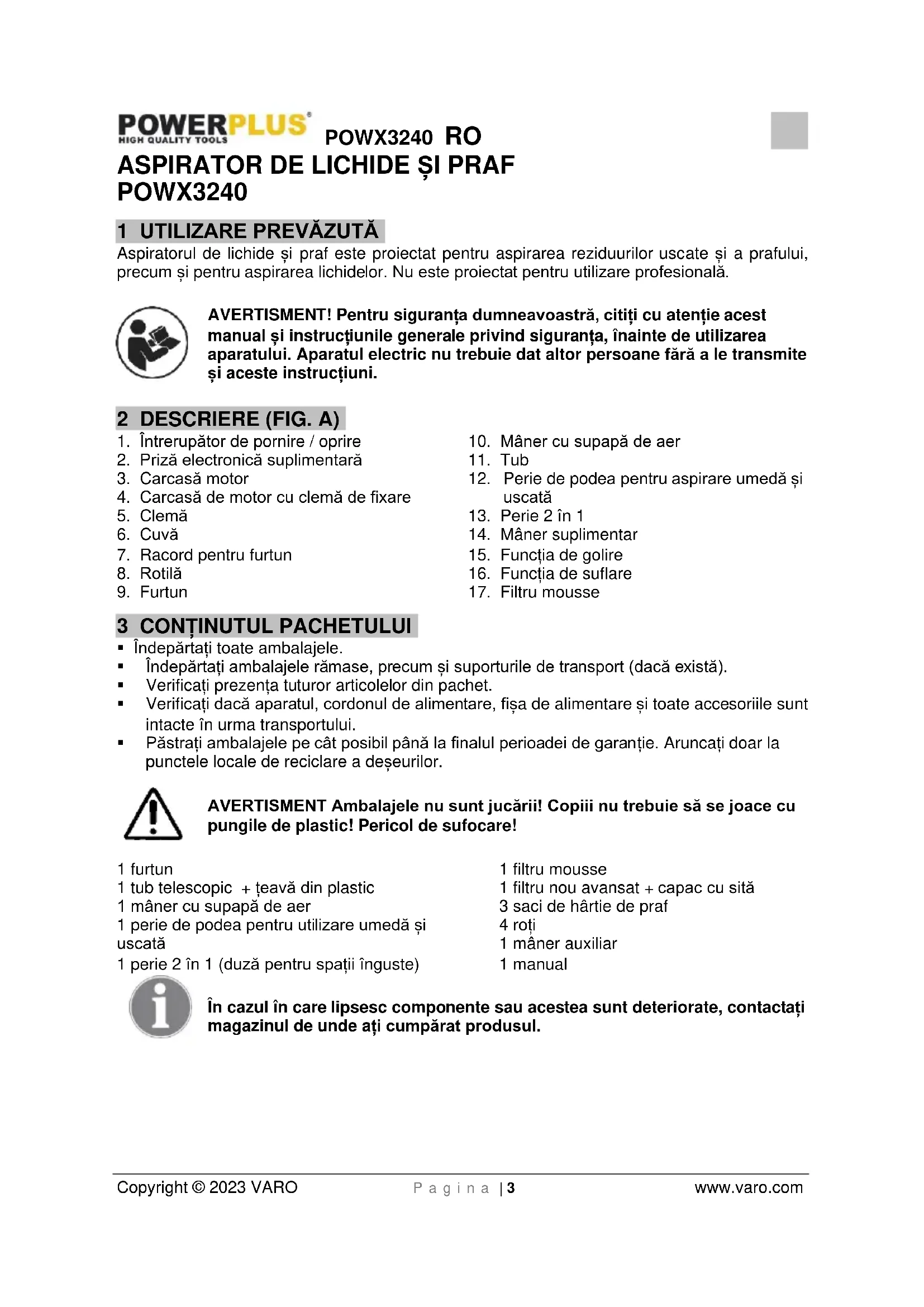 POWX3240 - Aspirator PowerPlus - Manual de utilizare gratuit