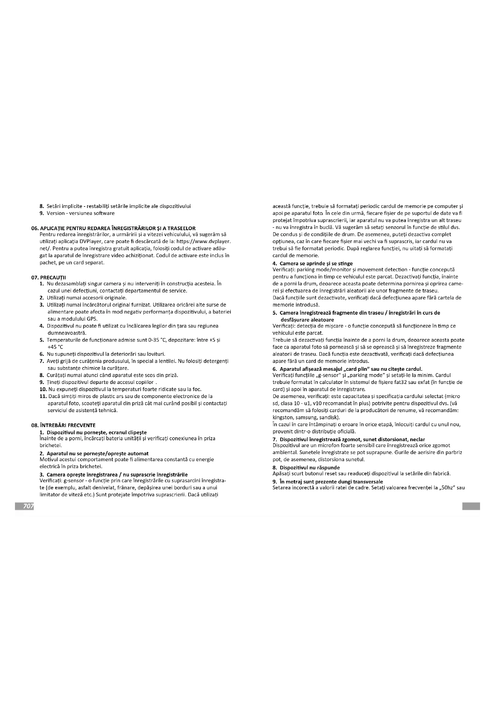 Pentru redarea înregistrărilor, a urmăririi și a vitezei vehiculului, vă sugerăm să ulizați aplicația DVPlayer, care poate descărcată de la: hps://www.dvplayer. net/. Pentru a putea înregistra gratuit aplicația, folosiți codul de acvare adău- gat la aparatul de înregistrare video achiziționat. Codul de acvare este inclus în pachet, pe un card separat.