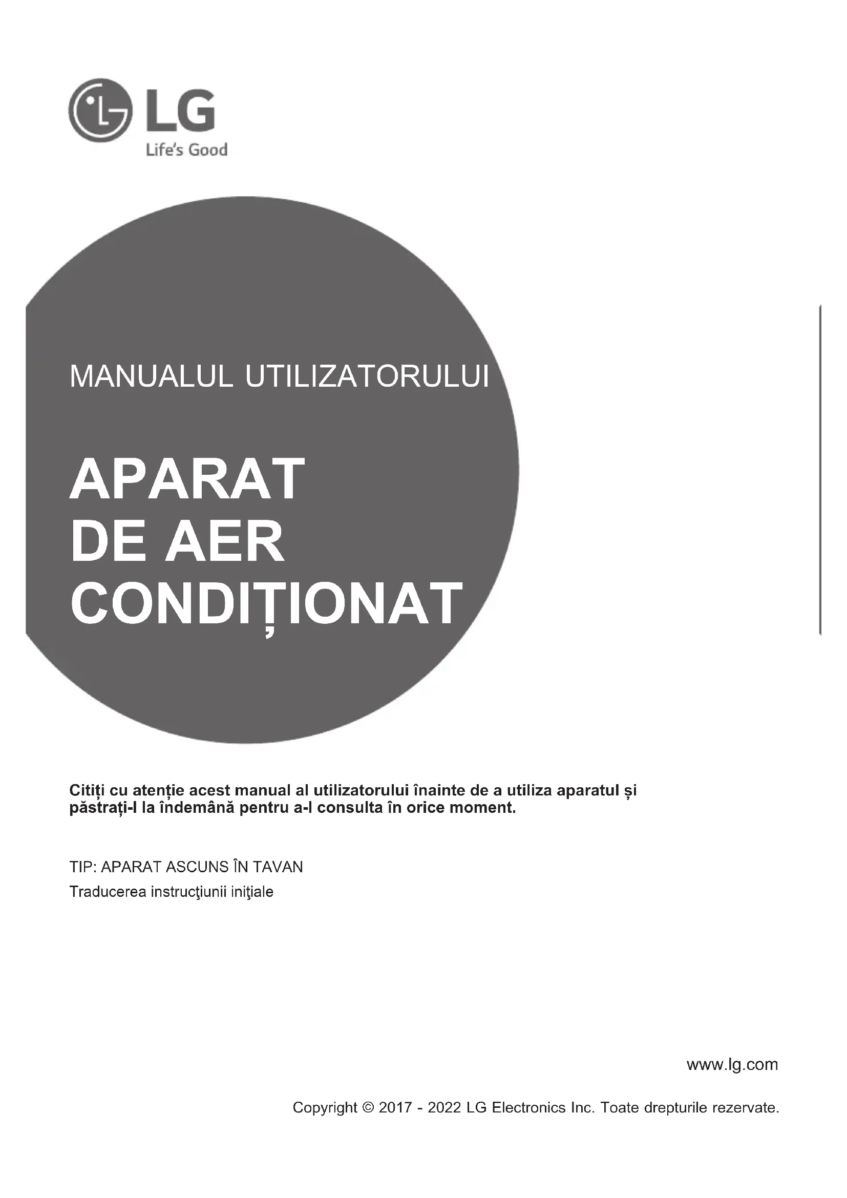 Traducerea instrucţiunii iniţiale Copyright © 2017 - 2022 LG Electronics Inc. Toate drepturile rezervate.CUPRINS Acest manual poate conține imagini sau detalii care diferă față de modelul achiziționat. Acest manual este supus revizuirii de către producător.