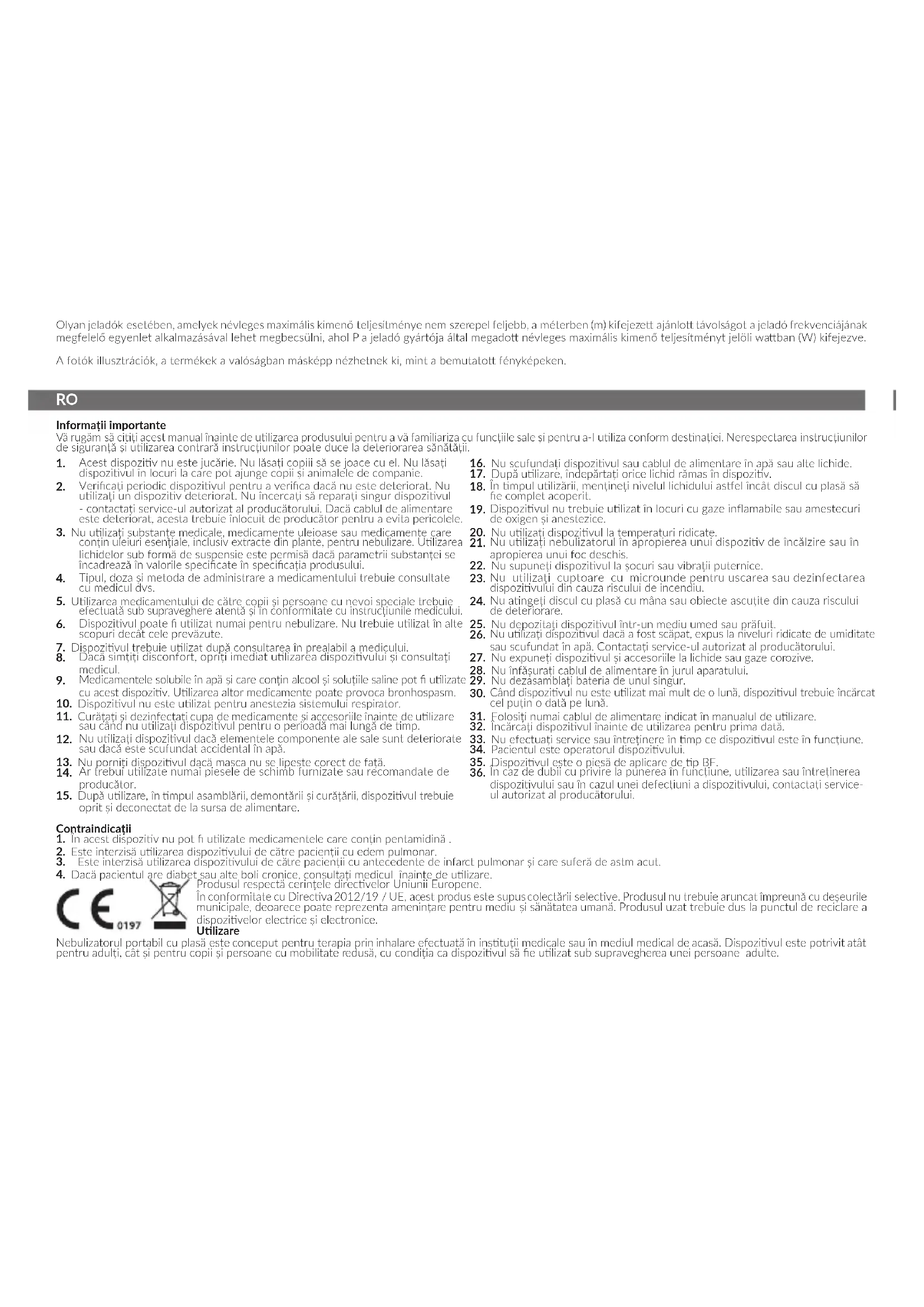 Dispozivul poate ulizat numai pentru nebulizare. Nu trebuie ulizat în alte scopuri decât cele prevăzute.