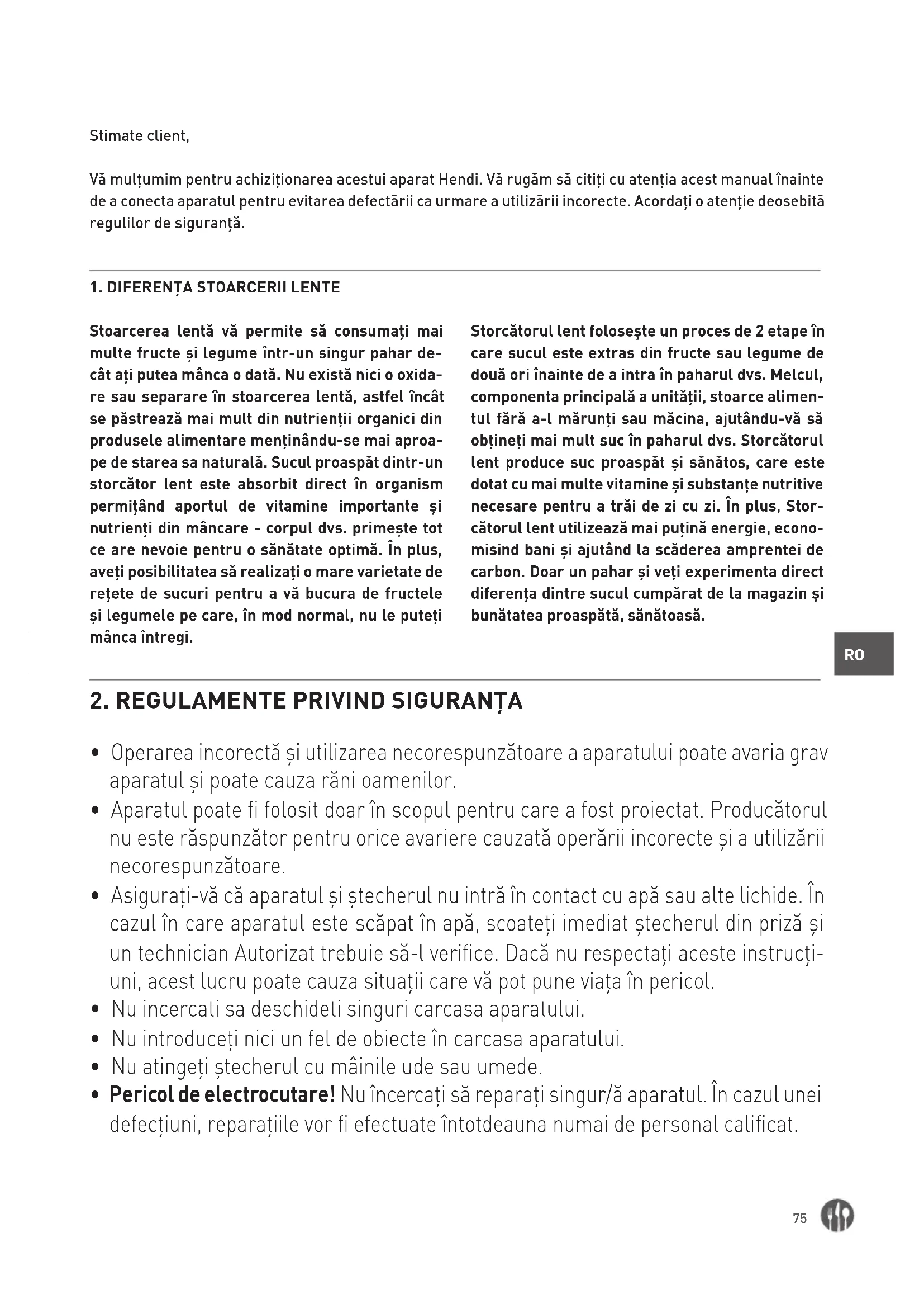 Stimate client, Vă mulțumim pentru achiziționarea acestui aparat Hendi. Vă rugăm să citiți cu atenția acest manual înainte de a conecta aparatul pentru evitarea defectării ca urmare a utilizării incorecte. Acordați o atenție deosebită regulilor de siguranță.